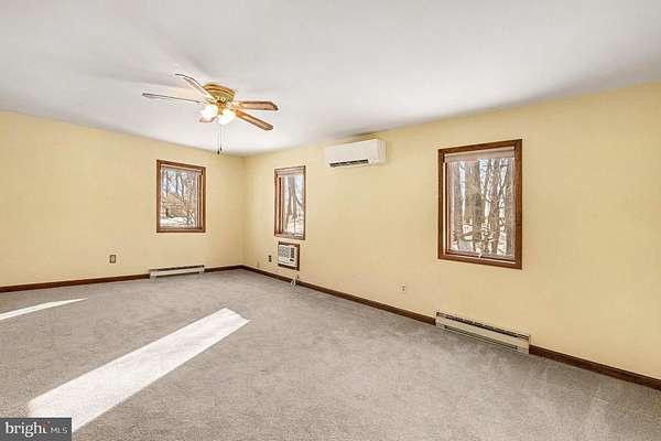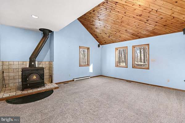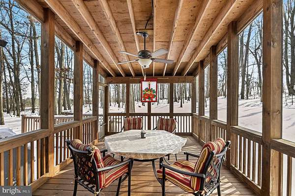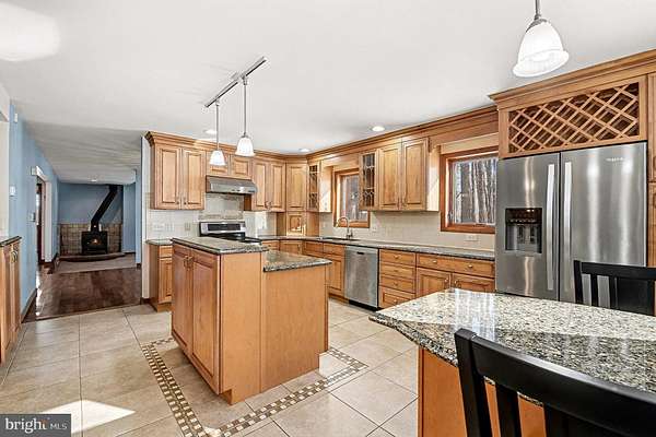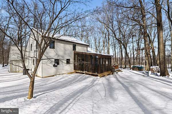 Set on a 2.47 acre wooded lot, this 2,500 sq. ft. contemporary home offers privacy, quiet surroundings, and a layout that fits the rhythm of everyday life. The main level features an open concept design that begins with a bright gourmet kitchen, complete with 42" maple cabinets, Silestone quartz counters, an island, and generous cabinet and counter space. The kitchen opens to a cozy family room providing an easy place to relax, catch up on shows, or stay connected while cooking. A separate dining room sits just off the kitchen, making weeknight meals and gatherings simple and convenient. The living room adds another inviting space and features a woodstove that brings warmth and charm during the cooler months. A main-floor bedroom/office adds flexibility for guests, work, or hobbies. Outdoor spaces are a natural extension of this home. The screened-in porch offers a quiet place to enjoy the wooded setting, and the maintenance-free rear deck overlooks the trees for year-round views. A maintenance-free front porch provides another spot to slow down and take in the surroundings. Upstairs, you'll find three additional bedrooms, two full baths, and a convenient upper-level laundry, keeping daily tasks simple and accessible. The oversized one-car garage offers extra storage, and the property includes a 16' x 32' workshop with electric, ideal for woodworking, equipment, or additional workspace. The partial basement with ceramic tile floor provides even more storage options and room for organization. Important updates include the roof (2020), heat pump and outside condenser unit (2008), well holding tank (2025), and hot water heater (2020), Mitsubishi mini-split in Primary BR (2023). Shed on the back of the property is being sold strictly AS IS.