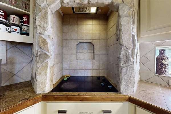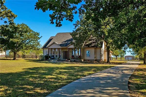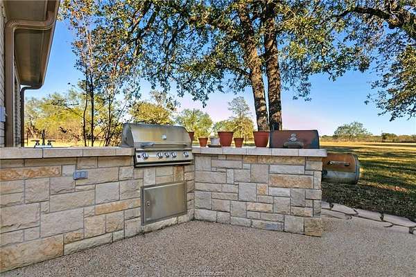 Nestled on 1.7 acres down a tree-lined drive, this beautiful one-story home combines country charm with smart design. Built with steel frame construction and accented with stone, brick, and cedar, it offers lasting quality and timeless appeal. With over 2,700 sq. ft. of living space, the home features 4 bedrooms, 3.5 bathrooms, plus a versatile 264 sf bonus room that can serve as an office, hobby space, or 5th bedroom. The open-concept floor plan centers around a welcoming living room with a cozy wood-burning fireplace and a wall of picture windows. The kitchen flows effortlessly into the main living area and features a natural stone range alcove, complemented by a large island with bar seating and a custom pantry featuring large drawers and lazy susan style organizers. The primary bedroom is complete with an ensuite bath which includes a tiled shower, garden tub, dual vanities, a spacious walk-in closet with built-ins and private access to the back patio. The secondary bedrooms have walk-in closets and share a Jack and Jill bath, while the mother-in-law suite includes its own bath and closet for comfort and privacy. Outdoors, you'll find a spacious extended patio and an outdoor kitchen with a sink, propane grill, and smoker. At the back of the property sits a large workshop with electricity and a custom built patio, a perfect spot for a swing and firepit. Smart home features include a Wi-Fi thermostat and garage door opener. A new roof was installed in September of 2025.