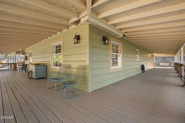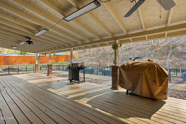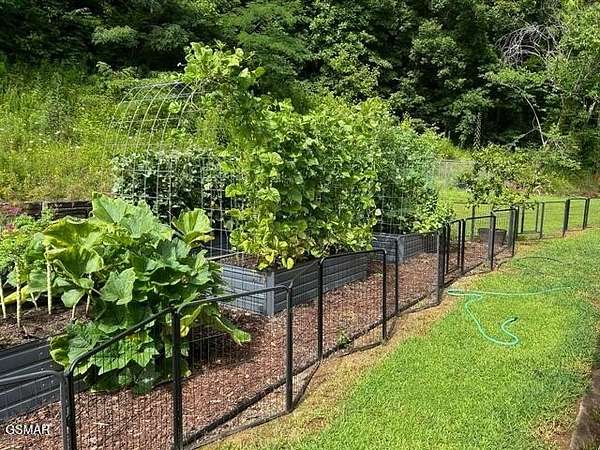 Tucked away in the heart of the Smoky Mountains and just minutes from Gatlinburg, this 2.652-acre mountain retreat offers privacy, functionality, and peaceful country living. Conveniently located near the Great Smoky Mountains National Park (Cosby entrance), the park-like setting welcomes you home with a scenic drive and an expansive covered front porch, nearly the size of the home, where you can hear Dunns Creek from your rocking chair. This one-level home features wide hallways that could easily accommodate handicap accessibility, wood and tile flooring throughout, and a tile shower. The kitchen includes newer Frigidaire Gallery appliances with induction stove, a built-in island, and washer and dryer that convey. Recent improvements include fresh interior and exterior paint, painted roof, repaired sheetrock, rebuilt porches and railings with added support piers, new HVAC, and a Clearwater water system. Outdoors, enjoy established raspberry and blueberry bushes, azaleas, over 60 lilies, raised garden beds with irrigation, a rear porch hot tub, oversized 2-bay workshop/garage, well house with 10x10 storage shed, privacy and split rail fencing, and full RV hookup with water, electric, and septic. Light restrictions allow for chickens, making this property ideal for a small organic vegetable garden farm or homestead lifestyle. Generac generator on site (needs servicing). Furniture negotiable with acceptable offer. Shelving in garage does not convey.