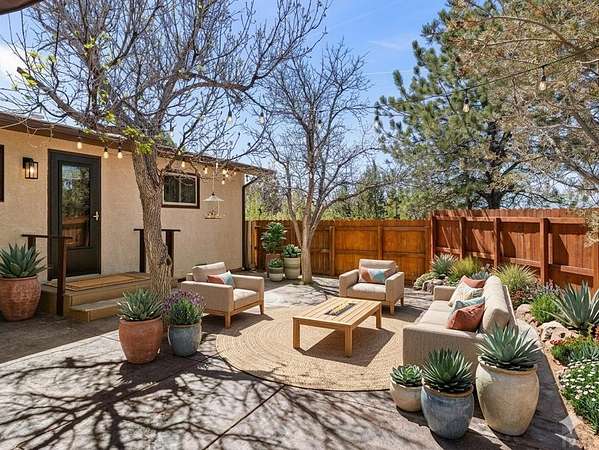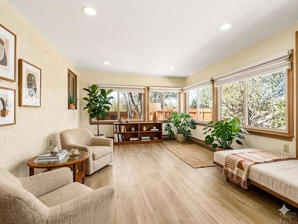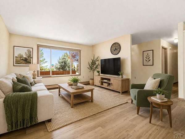 Privacy - Space - Opportunity Located in desirable Pueblo West, this well-maintained single-owner 3 bedroom, 3 bath home offers comfort, flexibility and room to grow - with over 2,000 square feet of living area, sitting on two deeded lots totaling 2.4 acres .Surrounded by mature landscaping fed by a drip system, 401 S. Tejon is ideal for horses, future development or just leave 'as-is' for your own space and privacy. An attached oversized three-car garage has plenty of room for your toys, tools and vehicles. This home has been refreshed with modern LVT flooring, an evaporative cooling system and a brand new septic tank. Each bedroom features its own bathroom for privacy and convenience, and the 4-season sunroom makes a great flex space, den or playroom. All kitchen appliances are included plus washer/dryer and an additional refrigerator/freezer and separate upright freezer. Step out front to a brick courtyard or out back to a stamped concrete patio where you'll enjoy entertaining and relaxing in a private environment surrounded by mature trees. This mountain-view property is filled with natural light and is the perfect Colorado home for families, retirees or those looking for an ideal place to expand in prestigious Pueblo West. Just minutes from the Pueblo Reservoir and the Horseman's Park, Don't miss this unique opportunity! Some photos virtually staged