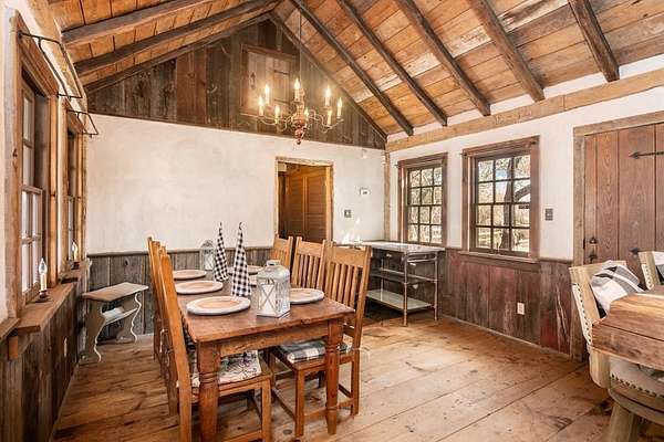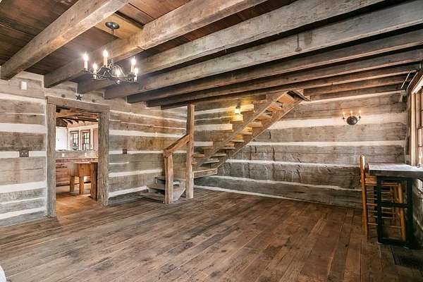 Step back in time with this authentic 1700s Kentucky log cabin, nestled on 10+ private, tree-covered acres and bordered on two sides by the emerald-green, year-round waters of Bear Creek and Left Bear Creek. A rare blend of history, nature, and rustic charm. The 2 bedroom, 2.5 bath home is thoughtfully constructed offering a cozy living room with a striking rock fireplace, warm and inviting kitchen, dining area plus a second-floor bedroom with a large bath and private deck overlooking the peaceful landscape. Home also offers a private bedroom retreat, on the first level, complete with its own fireplace and deck, ideal for guests or a tranquil primary suite. Relax and unwind on the side deck while soaking in the sights and sounds of nature and abundant wildlife. The property also includes a restored 1900s wooden windmill and a 30' x 40' insulated metal barn with a full bath, offering endless possibilities for storage, hobbies, or future projects. This unique property offers you the privacy and tranquility you have been looking for.