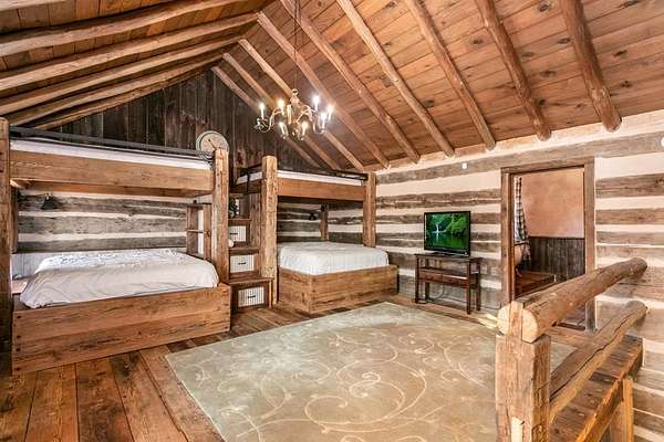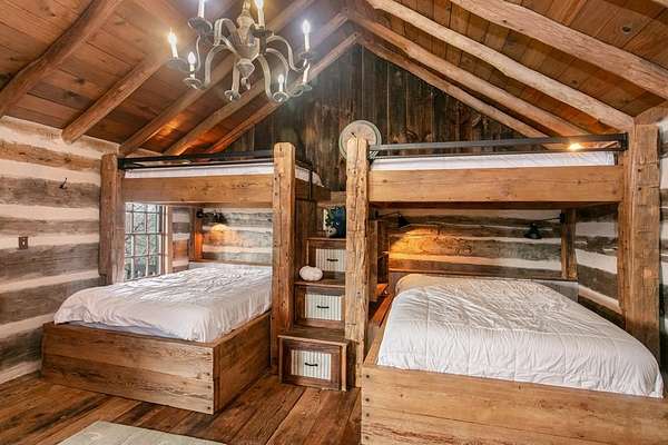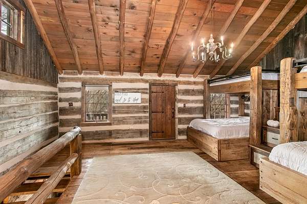 Step back in time with this authentic 1700s Kentucky log cabin, nestled on 10+ private, tree-covered acres and bordered on two sides by the emerald-green, year-round waters of Bear Creek and Left Bear Creek. A rare blend of history, nature, and rustic charm. The 2 bedroom, 2.5 bath home is thoughtfully constructed offering a cozy living room with a striking rock fireplace, warm and inviting kitchen, dining area plus a second-floor bedroom with a large bath and private deck overlooking the peaceful landscape. Home also offers a private bedroom retreat, on the first level, complete with its own fireplace and deck, ideal for guests or a tranquil primary suite. Relax and unwind on the side deck while soaking in the sights and sounds of nature and abundant wildlife. The property also includes a restored 1900s wooden windmill and a 30' x 40' insulated metal barn with a full bath, offering endless possibilities for storage, hobbies, or future projects. This unique property offers you the privacy and tranquility you have been looking for.
