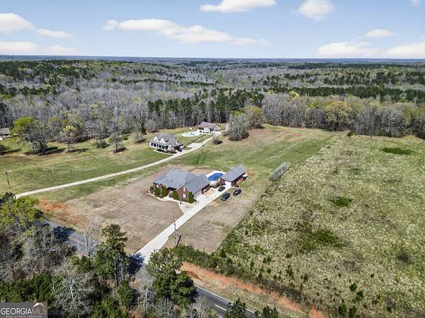 Situated on 3.3 acres, this spacious 4-bedroom, 3-bath home offers 2,983 square feet of versatile living space with exceptional outdoor amenities. The main level features hardwood, tile, and carpet flooring along with a gas propane fireplace (owned tank). Upstairs includes an additional room ideal for an office, study, or guest suite with a full bath. Enjoy outdoor living with both front and back porches, a saltwater pool with a one-year-old liner, and a rear overhang perfect for grilling and entertaining. The property includes a two-car attached garage plus a 20x40 all-brick detached shop with power and a half bath. Recent upgrades include a new downstairs HVAC system with new ductwork (approx. 1.5 years old), a hot water heater approximately 5 months old, two 200-amp electrical panels, and a well with a filtration system.