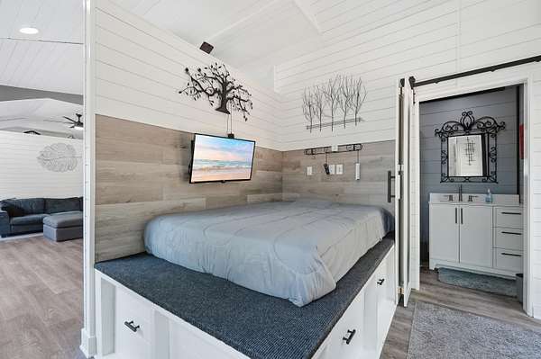 Tiny Home Living on 4 Acres of Lakefront Paradise Welcome to a rare find in the heart of Northwest Florida -- a 2024 charming tiny home 16x24 nestled on an expansive 4-acre waterfront parcel along the shores of Lake Holley a 400+ acre lake renowned for its trophy largemouth bass fishing. This is more than a home; it's a lifestyle waiting to be embraced. The spacious 585-square-foot tiny home features 1 bedroom and 1 bathroom, offering a simplified yet comfortable living experience perfect for those seeking to downsize, invest, or create a peaceful retreat. Step outside, and the real magic begins. Approximately 132 feet of pristine waterfront greets you, complete with a private fishing dock where you can cast a line at sunrise or simply soak in the tranquil views. The property comes equipped with essential infrastructure already in place -- a well, a 2003 septic system, and electric service -- saving you significant time and investment. A convenient circle drive provides easy access, while a storage shed with covered parking adds practical functionality for boats, equipment, or vehicles. Surrounded by natural beauty, you're just minutes from Shoal River Headwaters State Park and Walton High School a short drive into town. The sprawling outdoor space offers endless possibilities for expansion, gardening, or simply enjoying the peaceful Florida countryside. Four-acre waterfront parcels on local lakes are incredibly hard to come by. Don't let this extraordinary opportunity slip away -- schedule your private showing today!