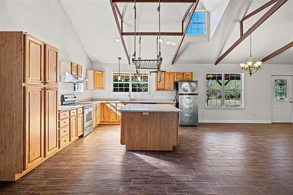 - Built-In Features, Cable TV Available, Cathedral Ceiling(s), Eat-In Kitchen, High Speed Internet Available, Kitchen Island, Open Floorplan, Pantry, Walk-In Closet(s)