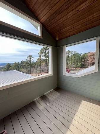 Rare Opportunity to own Seclusion with a VIEW! This location, off of Skyline Drive, is prime for the active family that enjoys entertaining, wide open space to explore and wants to be close to the state parks for trails. The view to the South of the Arkansas River and Mt. Nebo can be seen from the patio, Master Suite Balcony, and from inside the home. Professional Landscaping on the exterior with a Professional Kitchen on the interior continue bring the entertaining inside. This home boasts living spaces connected with a living room w/fireplace, along with an impressive Master Suite upstairs. The Pool House is heated and cooled with a kitchen and lounge space to enjoy. Store your boat, four wheeler or other toys in the 1000sf detached shop or in the shop attached to the pool house. Geothermal system provides for efficient, eco-friendly comfort. Look no further for the perfect place to relax, entertain, be close to parks and to all that Russellville has to offer.