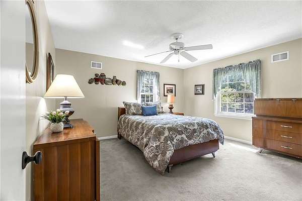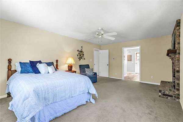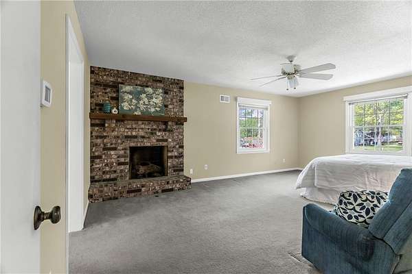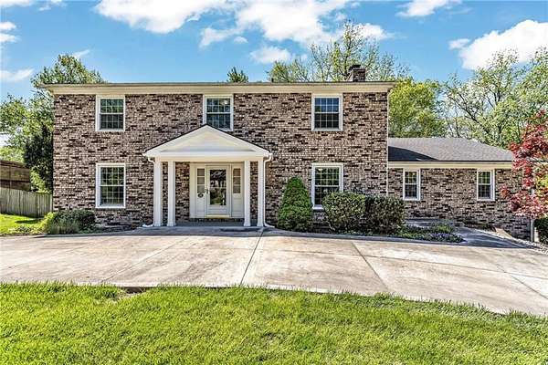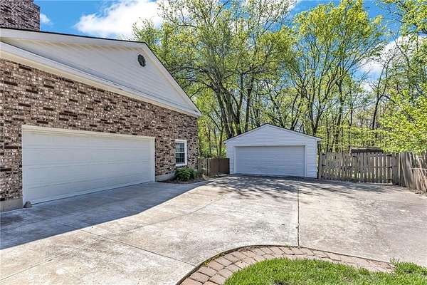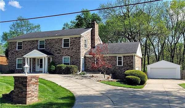 This classic 2-story brick home on 2 beautiful acres offering space, privacy and the kind of setting buyers dream about. The circle driveway creates an impressive arrival, while the attached 2-car garage plus an additional 2-car detached garage provide exceptional space for vehicles, hobbies, or storage. Inside, you'll find a traditional yet highly functional layout designed for both everyday living and entertaining. The main level features a formal Living room and formal Dining room, along with an eat-in Kitchen with custom cabinetry and stainless steel appliances. The Family room with a brick fireplace offers a warm, inviting space to gather. A main-level Bedroom is a standout feature with its own private entrance, making it ideal for a home office, guest space, multi-generational living or even a private business space. A full bath and half bath on the main level add convenience and flexibility. Upstairs, the spacious Primary suite serves as a true retreat, complete with its own brick fireplace, en-suite Bathroom and private deck overlooking the treed property. Three additional generously sized Bedrooms and a large full Bath with double vanity complete the upper level. The finished lower level expands your living space even further with a large open Rec room featuring another brick fireplace, a non-conforming Bedroom and a full Bath-perfect for guests, hobbies or extended stays. Step outside to a concrete Patio spanning the entire width of the home, ideal for entertaining, relaxing or simply enjoying the peaceful surroundings. The mature trees and expansive lot create a private, serene setting that's hard to find this close to city conveniences. Homes with this much land in Liberty are a rare find. If you've been searching for space, privacy and a home with character in a prime location-this is a must-see.**