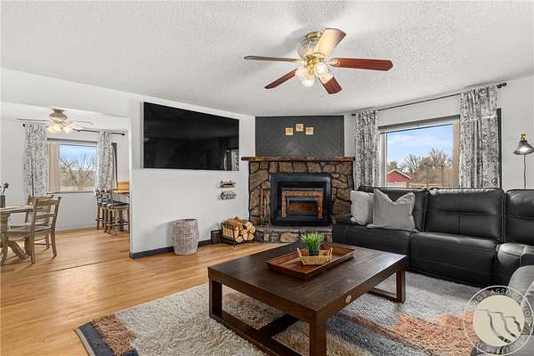 Tucked along the river and surrounded by wide-open skies, this rare 5-acre property offers the peaceful, private lifestyle so many are searching for. From the moment you arrive, you can feel it-the slower pace, the space to breathe, the freedom to live how you want. With no HOA or restrictions, bring the animals, park the RVs, and enjoy the flexibility that's getting harder to find. The updated 4 bed, 3 bath home blends comfort and function, with covered patios perfect for unwinding and taking in the river views. The land shines with 5 usable acres, a 3-stall barn, and a chicken coop-ideal for a hobby farm or room to grow. Just 40 minutes from Billings, you get a small-town feel without sacrificing convenience. Even better, city services mean no hauling water, no septic, no propane-just simple, reliable living. No flood insurance required. (Riverfrontage is est .22 miles)