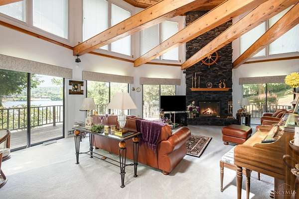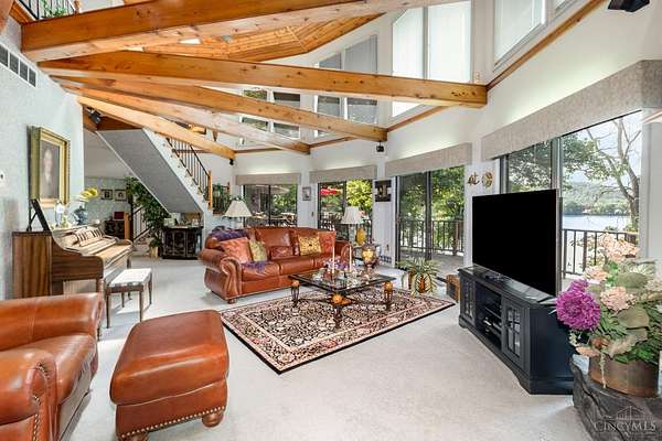 One-of-a-Kind Riverfront Living! Welcome to this truly unique home located directly on the beautiful Ohio River. Designed to maximize natural light and breathtaking views, the open floor plan features walls of windows that bring the outdoors in. This exceptional property offers 3 spacious bedrooms and 3 full bathrooms, along with a warm and inviting family room highlighted by a stunning stone fireplace. A 2-car detached garage provides convenience and additional storage. Nearly every room captures endless panoramic river views, creating a peaceful and inspiring setting. Outdoors, you'll find the ideal spot for a private dock with electric and water hookups already in placeperfect for enjoying life on the water. Included in the sale is 4.59 acres across the street with spectacular river views, offering the opportunity to build another home or enjoy as recreational ground. A rare chance to own an extraordinary waterfront retreat!