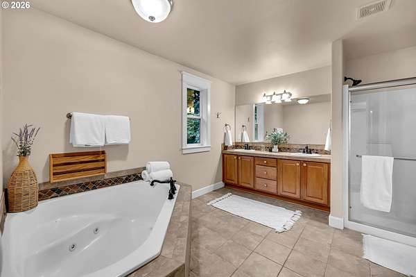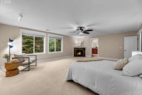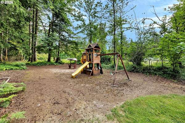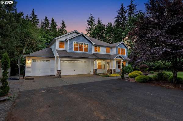 Welcome to this exceptional 4-bedroom + office, 3-bathroom home offering 3,765 sq ft of thoughtfully designed living space. Situated on a serene, mostly flat 2.5 acre lot. This property combines privacy, functionality, and amenities, such as a 1600 sq ft DETACHED SHOP that was built in 2017 and could potentially be made into extra living space or ADU - it has a partially finished bathroom, a loft and a wood stove. All of this is behind a fenced, gated entry with a circular driveway. The attached garage is oversized with lots of workspace area. There's tons of room to park all your toys or equipment. The main level of the home features an office that could possibly be a small 5th bedroom, and a bathroom with a walk-in shower, which is ideal for guests or multi-generational living, formal living room, dining room, family room with a gas fireplace and a lovely kitchen that was updated in 2016 with beautiful new countertops, new appliances and LVP flooring. Right outside the kitchen nook area is a sliding door taking you to a large deck with a hot tub overlooking the park-like backyard. The outdoor firepit area is perfect for entertaining or relaxing evenings. Upstairs you will find a large loft, three additional bedrooms, a full bath, laundry room, and the Primary Suite, which is huge with a gas fireplace, jetted tub, walk-in shower and walk-in closet. This fabulous home has a fresh coat of exterior paint, HVAC/heat pump replaced in 2013, and a backup generator for added peace of mind. This home offers privacy, generous space, and flexible outbuildings - perfect for hobbyists, or anyone seeking room to live and grow. Come take a drive up the beautiful Washougal River Road and view this home today.