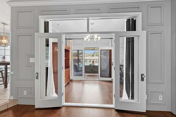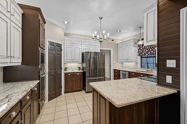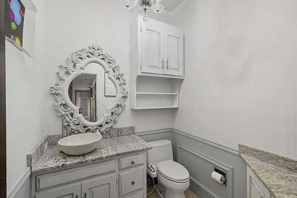 - Decorative Lighting, Double Vanity, Eat-In Kitchen, Granite Counters, High Speed Internet Available, Natural Woodwork, Pantry, Wainscoting, Wet Bar