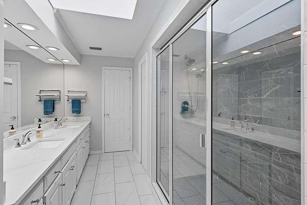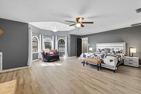 Inside, you'll find a beautiful mix of flooring that includes handscraped hardwood, along with wainscoting, shiplap accents, and an iron front door that sets the tone for the home's inviting style. The fireplace in the master bedroom adds a cozy touch for peaceful evenings. The spa-like ensuite features a skylight, oversized shower, and soaker tub, creating a private retreat you'll never want to leave.