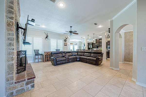 - Auto Garage Opener, Ceiling Fan(s), High Ceilings, Pantry, Propane Tank-Owned, Skylight(s), Smoke Detector(s), Tile Flooring, Water Softener-Owned, Wood Shutters