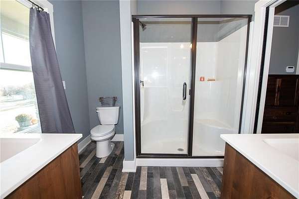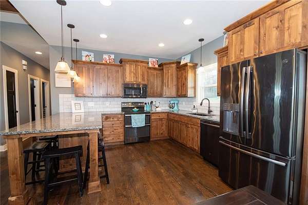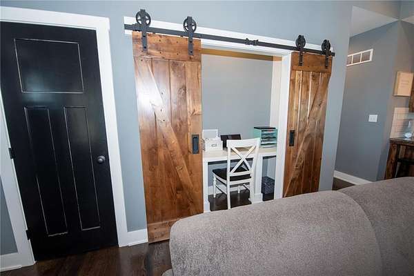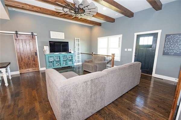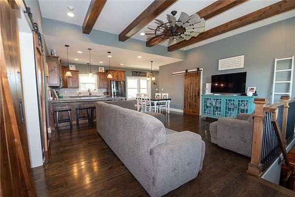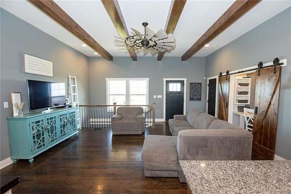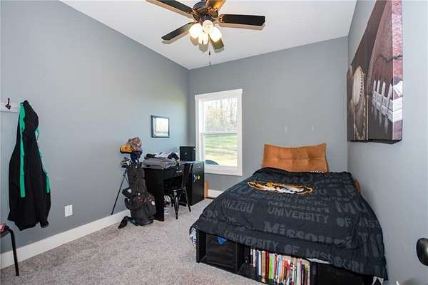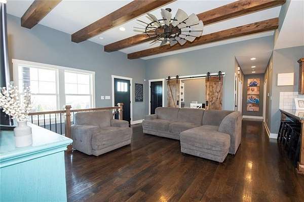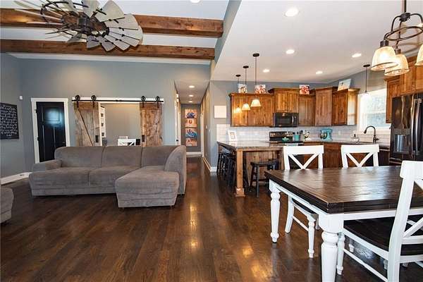 Nestled on 4.4 scenic acres, this one-owner custom home offers the perfect blend of craftsmanship, comfort, and country living. Built by a quality local builder, every detail was thoughtfully designed with timeless finishes throughout. Inside, you'll find 4 bedrooms, 2.5 bathrooms, and over 2,400 square feet of finished living space - with 1,650 sq ft on the main level and 844 sq ft in the finished basement. Side entry, oversized 2-car garage big enough for a workspace or storage of lawn equipment. The open-concept living area connects the kitchen, dining, and living rooms, showcasing beautiful wood beams, sliding barn doors, and custom Knotty Alder cabinetry, complemented by granite countertops that bring warmth and elegance to the heart of the home. Step outside to the 20' x 16' covered back patio, perfect for relaxing or entertaining while enjoying peaceful country views - plus a full-length covered front porch where you can sit and see for miles! A hidden gem of this property is the massive 53' x 6' storage area located beneath the front porch - ideal for seasonal decor and household items. You'll also find a cozy play space tucked under the stairs in the lower level, adding a unique touch. This home was built with efficiency in mind - it's all-electric, and averages only about $200/month on electricity and $45/month for water. Just beyond the backyard lies the Ferguson-Herold Conservation Area, a 175-acre public space managed by the Missouri Department of Conservation. Missouri Department of Conservation. It features rolling hills, small timber tracts, and the headwaters of Little Horseshoe Creek. Missouri Department of Conservation. This proximity offers nature lovers hiking, wildlife viewing, and serene outdoor time right next door. Enjoy the serenity of acreage living with easy access to I-70 - this home truly offers a rare mix of custom quality, energy efficiency, country charm and access to nature.