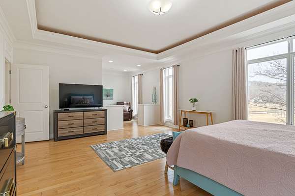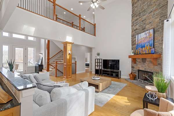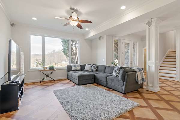 Homes rarely come available in this gated equestrian neighborhood that offers 2 lakes and multiple pastures. Thoughtfully designed and custom built home on 5 acres; tucked in by trees for privacy while offering abundant windows for light-filled spaces. Amazing views of the rolling Tennessee hills and valley from indoors and outdoors! Open floor plan 4858sf, 4 bedroom, 4.5 bath home also offers a private office, basement level gathering room with bar area, plus game room, and exercise space, and full bathroom, along with space for potential elevator. 3 car garage with wall of storage. Custom closets with built-ins all throughout. Primary bedroom ensuite on main level includes cozy sitting room! 3 bedrooms and office on second level. Spacious central kitchen brimming with counter space plus desk and large island along with breakfast built-in seating and storage. Warm maple wood cabinets and stainless appliances. The well designed 16x13 screened porch and the 20x13 deck with stone fireplace offer one of the best views in Williamson County!. Also boasts a fire-pit area in the woods. Roof 12/23. Bring a couple of horses and live a relaxed life at Lynnwood Downs, an exclusive gated equestrian neighborhood rich with amenities incl. 20 stall horse barn, indoor arena, tennis or pickleball court, basketball, volleyball, swimming pool, clubhouse, and playground. 11 min to downtown Historic Franklin and The Factory, 12 min to Costco, 15 min to Brentwood, 25 min to downtown Nashville, 25 min to BNA. Buyer to verify all data.