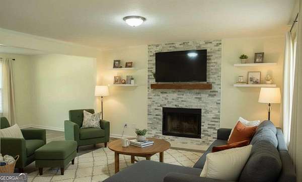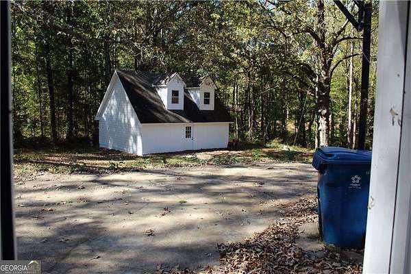 Set on four private acres, this updated home offers the perfect blend of comfort, character, and opportunity. A covered rocking chair front porch, classic dormers, and timeless board and batten accents create welcoming curb appeal and a charming first impression. Inside, the inviting family room features a floor-to-ceiling fireplace, serving as a stunning focal point and gathering space. The adjoining eat-in kitchen showcasing a subway tile backsplash, pantry, and easy access to the back patio for seamless indoor-outdoor living. The primary suite on the main level provides convenience and privacy, complete with a spacious walk-in closet and a beautifully finished bath featuring a fully tiled, frame-less shower and double vanity. A half bath on the main level adds additional practicality for guests. Upstairs, a rare and flexible layout includes a second primary bedroom with double vanity, along with three secondary bedrooms, an additional full bath, and a dedicated laundry area. With a little TLC, this home presents an incredible opportunity to personalize and customize to your style. The expansive acreage offers endless possibilities. Clear additional space, design your dream outdoor retreat, add a pool, or create the perfect entertaining environment. The detached workshop provides exceptional versatility and can easily serve as a business space, storage for equipment, or future guest accommodations. The loft area offers additional potential and benefits from a separate meter, making conversion options even more appealing. Ideal for a homeowner seeking space and privacy, a business owner needing room for equipment, or a family ready to spread out and enjoy a larger piece of land. The property also features a private well while remaining connected to public water, offering added flexibility. Conveniently located near recreational amenities including Panola Mountain (4 miles), Arabia Mountain (5 miles), and South River (2 miles), as well as nearby schools, shopping, dining, parks, and highways for an easy commute. This is a rare opportunity to own acreage, versatility, and lifestyle all in one property!