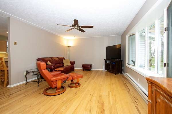 Recently rehabbed throughout with fresh paint, insulation, Hickory Hardwood flooring, updated baths, new lighting, windows, electric box, and doors. The home features a beautiful new kitchen with quartz countertops, soft-close cabinetry, farmhouse sink, coffee bar, under-cabinet lighting, and breakfast bar. Enjoy outdoor living with approximately 1,000 sq ft of Trex decking and a Trex front porch, all set on 6 acres with woods, creek & bridge. Additional highlights include attic storage, wood fireplace, wood burner, bay window, and a 2020 standing seam roof with leaf guards on gutters. Rural Lorain Water. Outbuilding features a 30' x 24' barn with metal roof, concrete floor, drain, and electric, along with an area with crushed limestone and lean-to. Penfield Twp & Keystone Schools