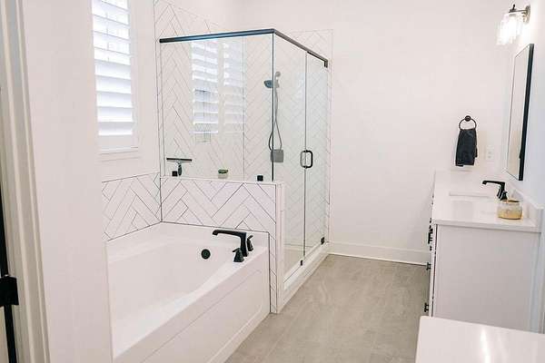 - Ceiling Fans, Garden Tub, Primary Bedroom Downstairs, Washer/Dryer Connection, Window Treatments