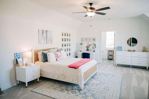 The primary suite, located on the main level, offers a private retreat with an en-suite bath featuring a garden tub and a large walk-in closet. Two additional main-level bedrooms share a Jack-and-Jill bath. Upstairs, you'll find a private fourth bedroom with its own en-suite bath and a bonus room, perfect for guests, a home office, or a media space.