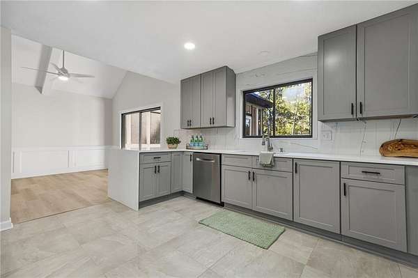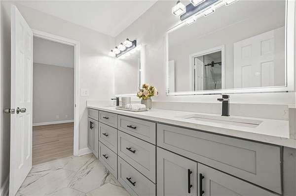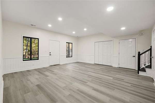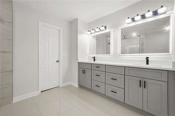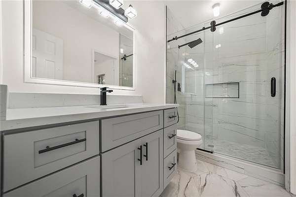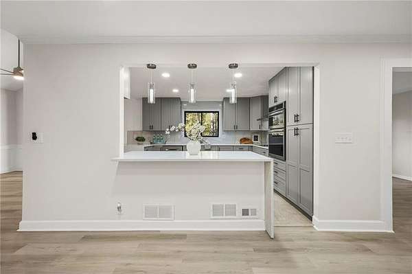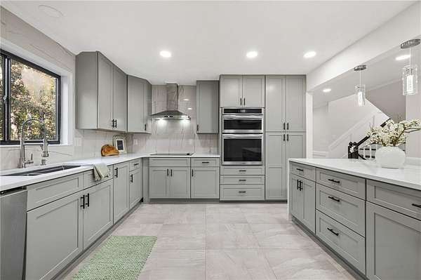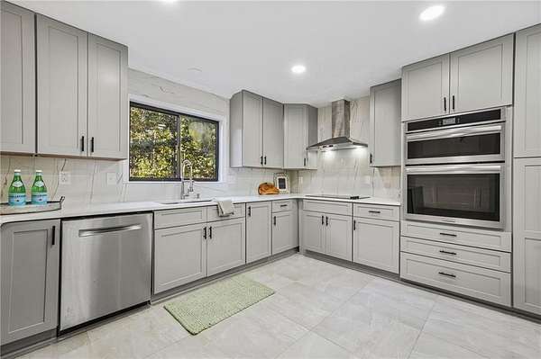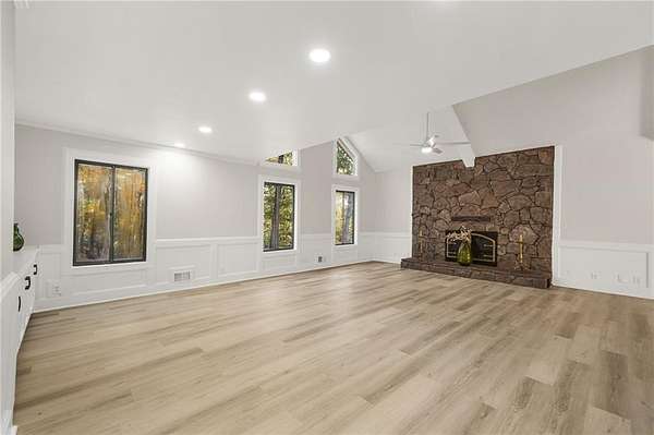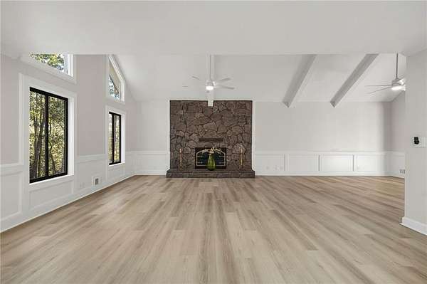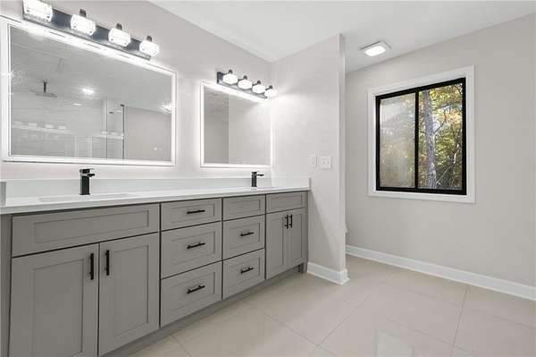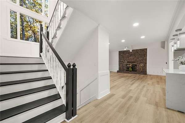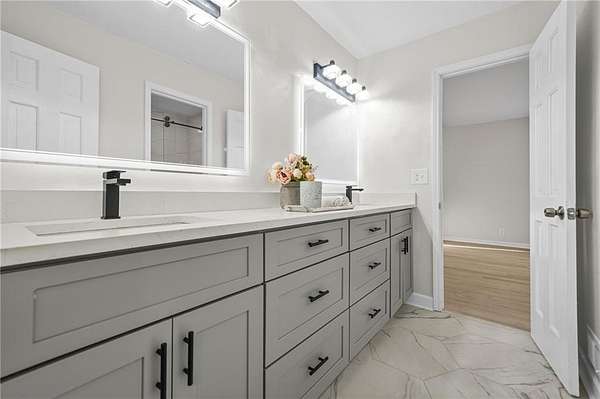 Introducing a truly exceptional residence where modern sophistication meets private serenity. This fully renovated 5-bedroom, 3.5-bath home spans 3,456 sq ft and sits gracefully on 1.7 acres of flat, secluded land surrounded by mature trees. This property blends modern elegance with peaceful privacy - truly a rare find in Snellville. Inside, you'll be greeted by a bright, open floor plan featuring brand-new flooring, designer lighting, and a completely renovated kitchen with quartz counters, stainless steel appliances, and custom cabinetry. The main level great room with vaulted ceilings, flows seamlessly into the kitchen and dining areas plus walk outside onto a sun-filled sundeck leading to oversized deck all overlooking the vast flat backyard oasis, creating the perfect environment for both entertaining and everyday living. 2 additional bedrooms on the main level plus an office. Walk upstairs to a large Primary suite with an oversized walk-in closet, stunning remodeled bathroom with large glass shower and separate soaking tub. Downstairs, the finished basement offers 2 additional bedrooms and a separate living area - ideal for guests or in-laws. A three-car garage and extended driveway with elegant turnaround allow for ease and ample guest parking. Located just minutes from major highway, shopping, dining, parks, and top rated schools. Every detail of this home has been updated - from the new bathrooms and fixtures to the energy-efficient systems and modern finishes throughout. Located minutes from shopping, dining, parks, and highly rated schools, this home offers the space, privacy, and upgrades today's buyers are looking for. Experience the perfect balance of comfort, style, and serenity at 4013 Brenteresa Court - a true move-in-ready retreat with room to grow.