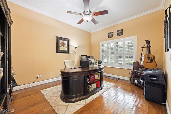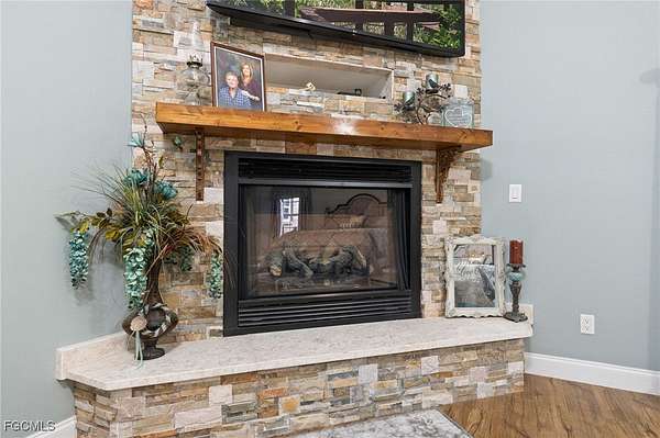 Welcome to this exceptional two-story brick residence in beautiful LaBelle, FL offering approximately 8,450 square feet of refined living space. This 4-bedroom, 3.5-bath estate is beautifully landscaped and features gated entry, a circular paved driveway, and tranquil lake views. Upon entry, the foyer is highlighted by a vintage Swarovski crystal chandelier and opens to a formal living room with a dramatic rock fireplace and triple-arched window overlooking the pool and lanai. A private office with wood floors and vintage glass double doors sits just off the foyer, along with a formal dining room featuring wood floors, an elegant chandelier, and large front-facing windows. The gourmet kitchen features granite countertops, a rock-accented bar, stainless steel appliances including an ice machine and trash compactor, center island, double sinks plus prep sink, soft-close cabinetry with slide-out shelving, accent lighting, glass display cabinetry, and a walk-in pantry. The adjacent family room opens through double glass doors to a sunroom and seamlessly connects to the outdoor living space. The first-floor master suite is a luxurious retreat, complete with a fireplace, ceiling fans, darkening blinds, and oversized his-and-her walk-in closets. The spa-inspired master bath includes a soaking tub with stained-glass accent window, a glass-enclosed shower with body jets, rain head, and handheld shower, dual granite vanities, a makeup vanity, tile flooring, and custom cabinetry. Upstairs are three spacious bedrooms, all with wood floors and walk-in closets, plus a full bath with double vanities and a tub/shower combination. Enjoy resort-style living with a heated pool, sheer descents, lighting, and stunning lake views. The stone-paved lanai includes an outdoor cooking and entertainment area, with a paved walkway leading to a firepit. Additional features include a half bath with vintage accent sink, a spacious laundry room with granite countertops and storage, a screened patio, and a two-car garage. Above the garage is a large game room or apartment with full bath, mini kitchen, bar, and entertainment space. A 2,160 sq. ft. (36' x 60') detached brick garage/workshop/outbuilding adds exceptional versatility, featuring two 14' x 9' garage doors and a separate entrance leading to a small office or workroom-ideal for storage, hobbies, or business use. The grounds are fully landscaped with Florida trees, river rock accents, sprinkler system, outdoor lighting, and gated access. Set in the serene countryside of LaBelle, this estate offers refined privacy, expansive views, and a true sense of retreat surrounded by natural beauty. Known for its wide-open spaces, riverfront charm, and understated elegance, LaBelle provides a peaceful lifestyle while remaining within comfortable reach of Fort Myers, Naples, and Southwest Florida's premier dining, shopping, and coastal destinations.