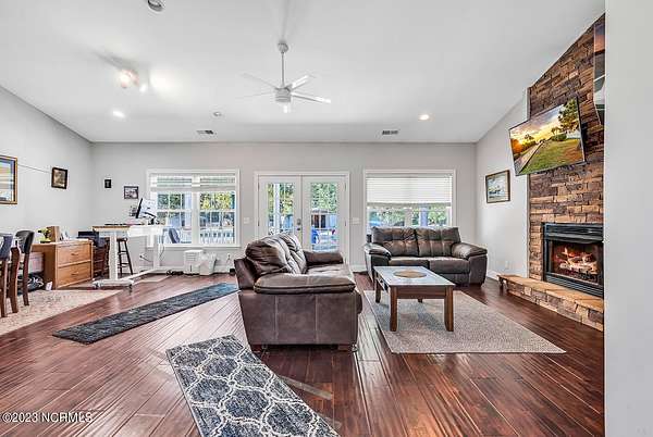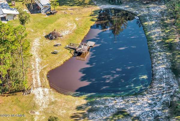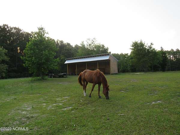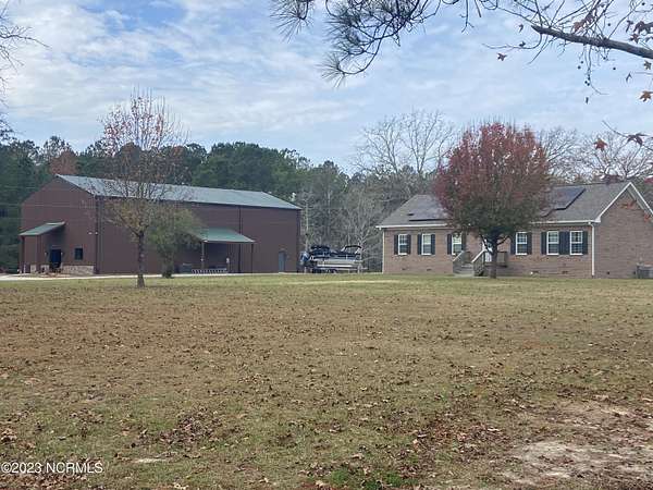 Rare opportunity to own nearly 10 high and dry acres just minutes from Hwy 17 and the beaches. This unique property offers residential comfort, income potential, and commercial flexibility under CFA zoning. The all-brick 3 bedroom, 2 bath home (approx. 1,700 heated sq. ft.) features hardwood and carpet flooring, a spacious primary suite with walk-in shower, and a covered concrete back porch overlooking cleared pastureland. The home is equipped with a Tesla solar system with battery backup and generator package. The newly constructed 3,200 sq. ft. red iron barndominium includes 1,600 heated/cooled sq. ft. previously used as a wellness spa, with massage rooms (ashiatsu bars installed), a large mirrored studio, full kitchen, restroom with shower, and laundry. The remaining 1,600 sq. ft. warehouse space with 27-foot ceilings is currently leased for income. Combined heated space totals approximately 3,300 sq. ft. The fully fenced property includes electric fencing, a 4-stall stable, two large outbuildings, and a stocked 3/4-acre pond with dock. Ideal for horses, retreats, events, or investment. CFA zoning allows for potential commercial uses such as wellness center, horse boarding, Bed & Breakfast, Airbnb, or other ventures without rezoning. Seller financing available. Square footage is approximate and not guaranteed. Buyer responsible for verification.