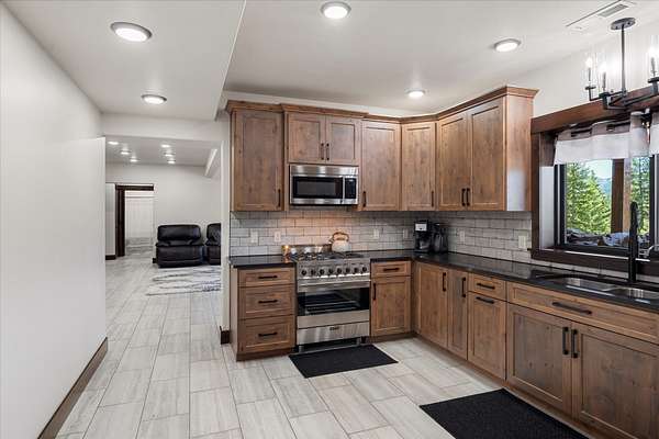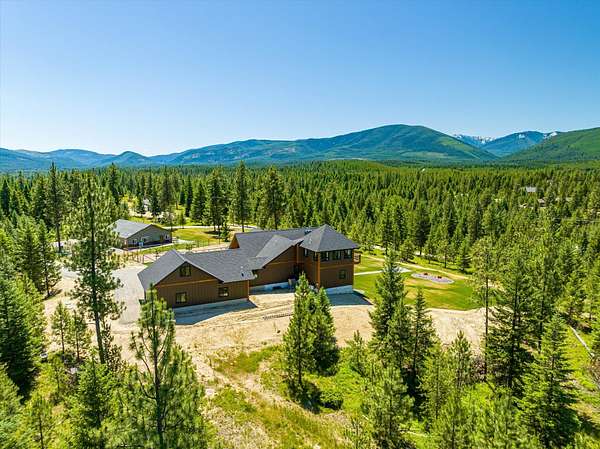 Get ready to be mesmerized by the breathtaking views from this estate in NW Montana which includes two homes and almost 30 acres of forested wilderness. The main home, finished in 2024, boasts over 5500 SF of rustic luxury, featuring hand-peeled beams, rock fireplace, custom iron railings, aspen T&G ceilings, rich hickory flooring, and expansive windows showcasing the towering mountains. The chef's kitchen is a dream, equipped with luxury Italian appliances, hidden walk-in pantry, gleaming quartz countertops, custom alder cabinetry, and a built-in Miele espresso machine. The main floor primary suite includes a jetted tub positioned beneath windows to take full advantage of the surrounding views and privacy. Additionally, the main floor comprises an additional bedroom, full bath, mudroom, and laundry, as well as an 1100+ SF wrap-around deck. Descending to the lower level, a spacious family room awaits, complete with double doors leading to the covered patio, lawn, and firepit area. There's a second, well-appointed kitchen, two more bedrooms, two bathrooms, a utility room, and in true Montana style, even a game-processing/canning room. If that's not enough, walk to the top level of this house to the bonus space with a wet bar, built with windows all around to experience the breathtaking view. Finally, this gorgeous home has a 1250 sq. ft. three-car attached garage with large overhead doors, as well as a 350 sq. ft. unfinished storage area above. This estate property also contains a second home built in 2019. This darling 1150 sq. ft. two-bedroom, one-bath home with a cozy woodstove and an oversized attached two-car garage is currently being used as a successful short-term rental. Between the two homes, you will find a fenced 130'x55' garden with blueberries, raspberries, raised garden beds, and an orchard containing apple, cherry, pear, and peach trees. There is a backup generator installed that is large enough to power both houses. Feel like you are on top of the world on this Montana estate yet enjoy easy year-round access just minutes from all the conveniences you need. There are plenty of recreation opportunities nearby as well, with the Cabinet Mountain Wilderness, Lake Koocanusa, Kootenai Falls, Ross Creek Cedars, and even Glacier National Park within easy driving distance.