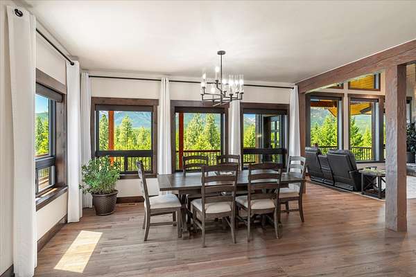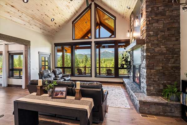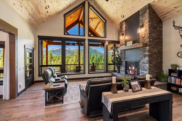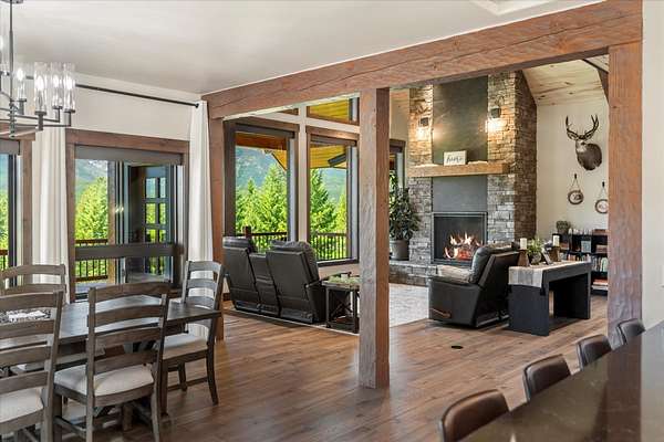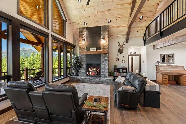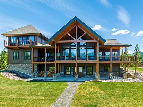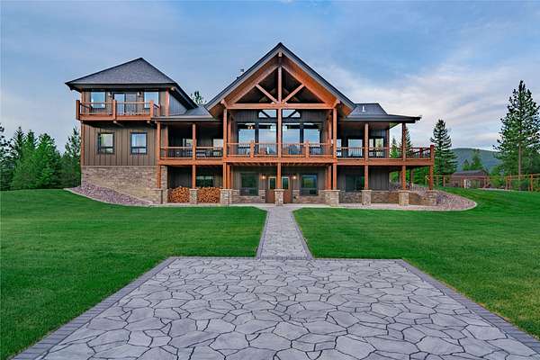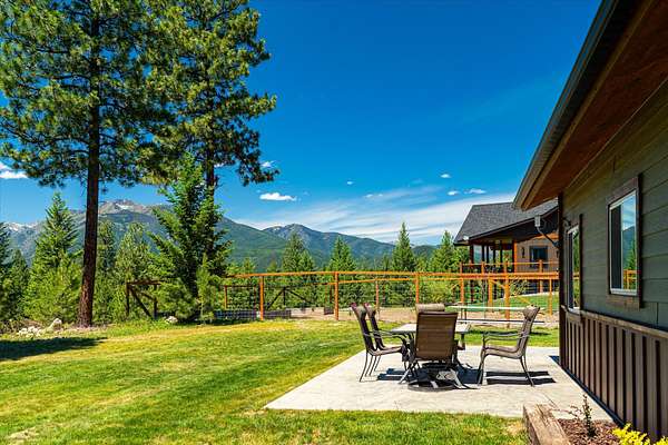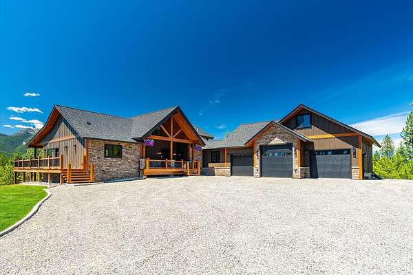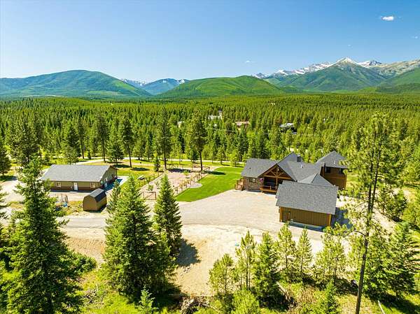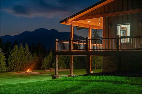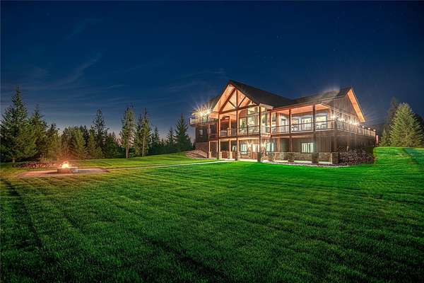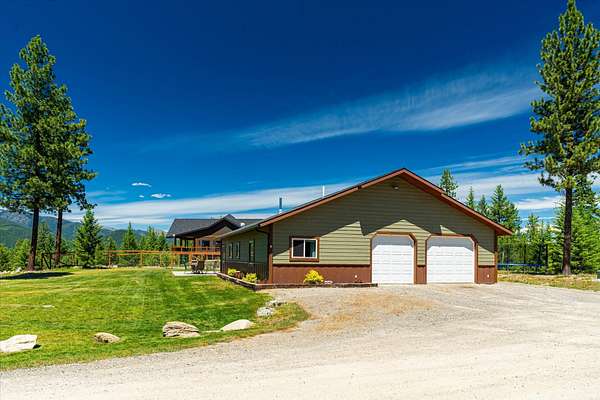This NW Montana estate feels like its own world-nearly 30 acres of forested hillside, two beautiful homes, and views that stretch for miles. The main home, finished in 2024, blends luxury with Montana character: hand-peeled logs, a towering rock fireplace, custom ironwork, aspen ceilings, and hickory floors. Sunlight pours through the expansive windows, drawing your eye to the mountains beyond. The kitchen is built for those who love to cook and gather, with Italian appliances, quartz counters, a hidden pantry, and a built-in espresso maker. The primary suite's jetted tub sits beneath picture windows, creating a private retreat with nature as the backdrop. Downstairs, the home opens to a large family room that leads directly to the patio, lawn, and firepit. With a second kitchen, two more bedrooms, and a game-processing/canning room, the lower level is ready for guests, hobbies, or extended stays. Upstairs you'll find panoramic windows, breathtaking views, a wet bar, and balcony. This home includes a spacious three-car garage with extra-large overhead doors and a large storage loft for extra convenience. The second home, built in 2019, is charming and efficient, with two bedrooms, a woodstove, and its own oversized garage. It currently serves as a successful short-term rental. Between the homes, a fenced garden and orchard provide berries, fruit trees, and raised beds. A whole-property generator ensures peace of mind. Despite its mountaintop feel, the estate offers year-round access and is minutes from everyday conveniences. Outdoor recreation abounds nearby, including the Cabinet Mountain Wilderness, Lake Koocanusa, Kootenai Falls, Ross Creek Cedars, and even Glacier National Park and Whitefish Mountain Resort are an easy drive away.