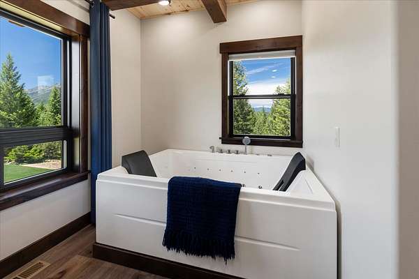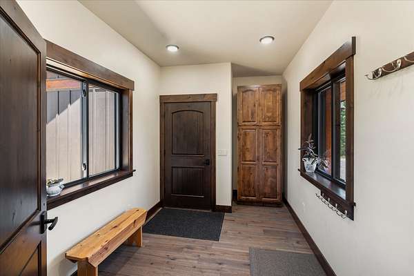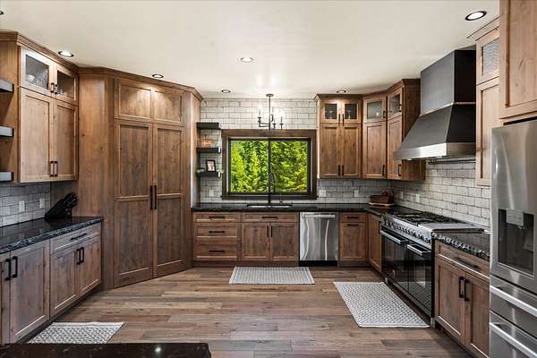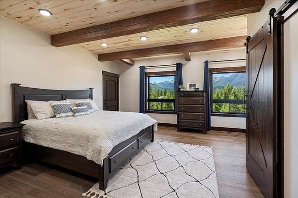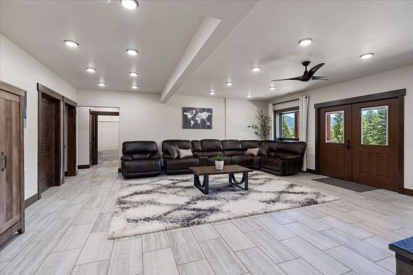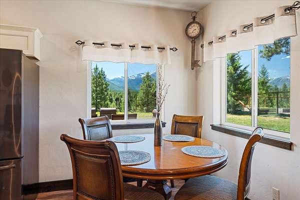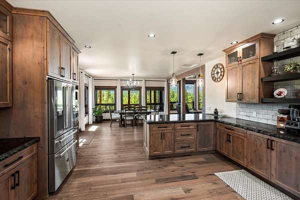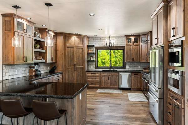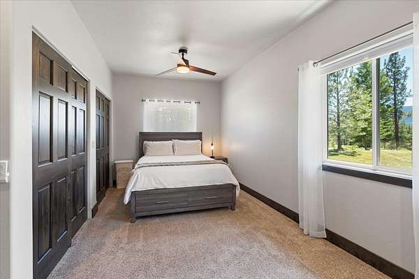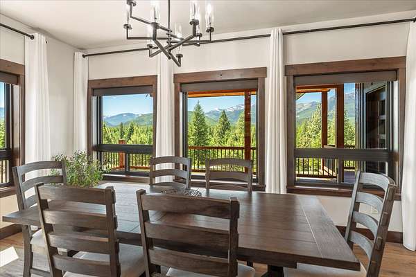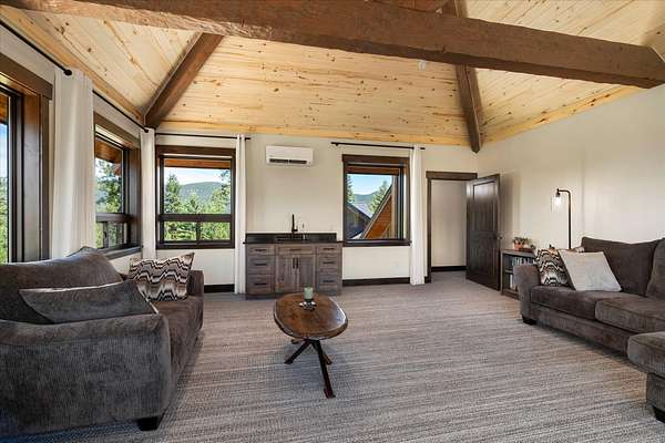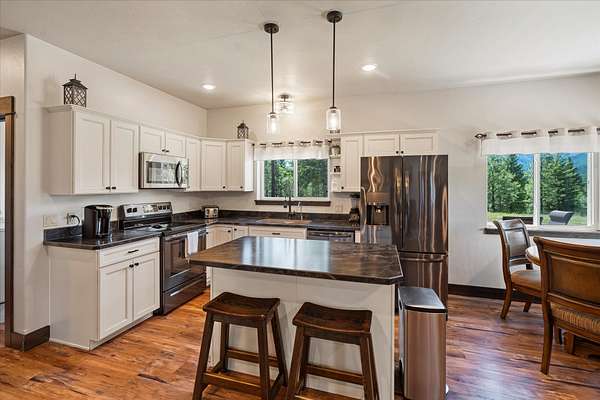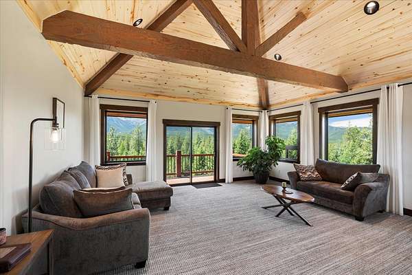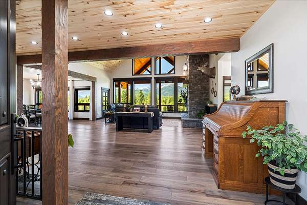 This NW Montana estate feels like its own world-nearly 30 acres of forested hillside, two beautiful homes, and views that stretch for miles. The main home, finished in 2024, blends luxury with Montana character: hand-peeled logs, a towering rock fireplace, custom ironwork, aspen ceilings, and hickory floors. Sunlight pours through the expansive windows, drawing your eye to the mountains beyond. The kitchen is built for those who love to cook and gather, with Italian appliances, quartz counters, a hidden pantry, and a built-in espresso maker. The primary suite's jetted tub sits beneath picture windows, creating a private retreat with nature as the backdrop. Downstairs, the home opens to a large family room that leads directly to the patio, lawn, and firepit. With a second kitchen, two more bedrooms, and a game-processing/canning room, the lower level is ready for guests, hobbies, or extended stays. Upstairs you'll find panoramic windows, breathtaking views, a wet bar, and balcony. This home includes a spacious three-car garage with extra-large overhead doors and a large storage loft for extra convenience. The second home, built in 2019, is charming and efficient, with two bedrooms, a woodstove, and its own oversized garage. It currently serves as a successful short-term rental. Between the homes, a fenced garden and orchard provide berries, fruit trees, and raised beds. A whole-property generator ensures peace of mind. Despite its mountaintop feel, the estate offers year-round access and is minutes from everyday conveniences. Outdoor recreation abounds nearby, including the Cabinet Mountain Wilderness, Lake Koocanusa, Kootenai Falls, Ross Creek Cedars, and even Glacier National Park and Whitefish Mountain Resort are an easy drive away.