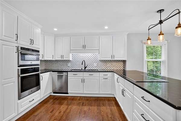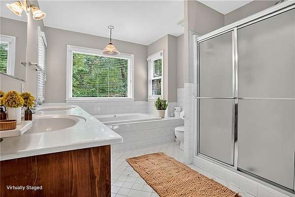 REFINISHED HARDWOODS underfoot, the warmth of a SUNLIT BREAKFAST ROOM, and the deep soak of a JACUZZI TUB create everyday comfort. Smooth COMPOSITE DECKING and cool shade from the TERRACE-LEVEL PATIO enhance outdoor living, while thoughtful details--PULL-OUT SHELVING, TOUCH FAUCET, and a TRIPLE-BOWL SINK--add convenience.