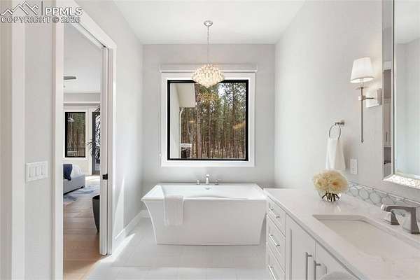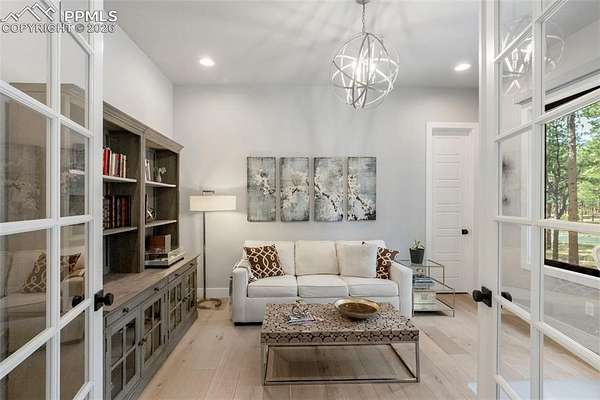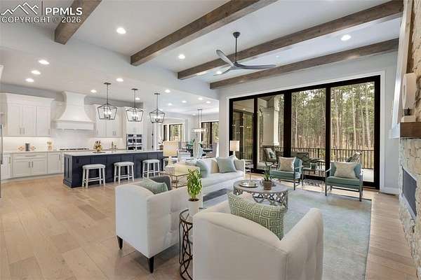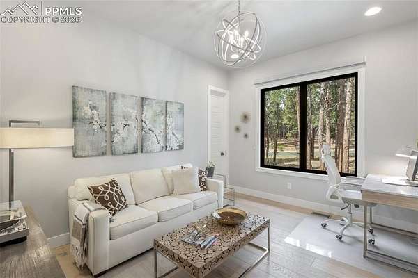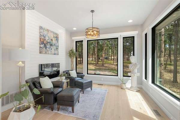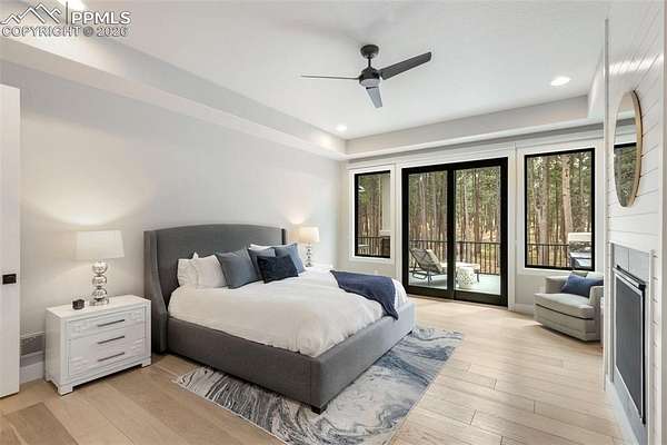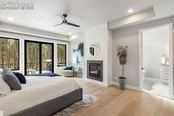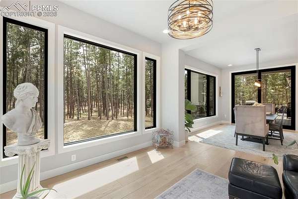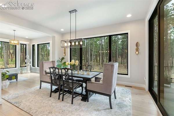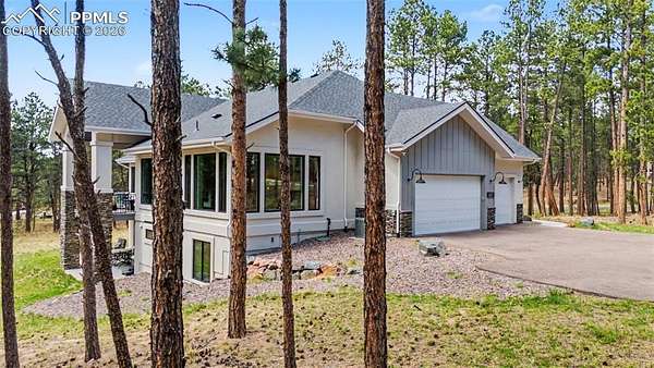 Experience refined Colorado living in this exceptional custom home by Alliance Builders built in 2019, nestled in the forest on a private 5+ acre corner lot within the prestigious, gated High Forest Ranch community. Surrounded by towering pines and abundant wildlife-including deer, foxes, elk, and hummingbirds-this home offers a rare blend of luxury, privacy, and natural beauty. Residents can enjoy exclusive amenities including private hiking trails, a pickleball and basketball court, with everyday conveniences a short drive away. Thoughtfully designed with both comfort and functionality in mind, this 5-bedroom, 5-bath residence boasts floor-to-ceiling windows and floods the home with natural light and bring the outdoors in throughout every room. The heart of the home is a stunning great room flanked by the gourmet kitchen, showcasing a large center island, oversized refrigerator, double dishwashers, expansive walk-in pantry and abundance of storage. The formal dining room is perfect for holiday gatherings while the peaceful sunroom with fireplace provides the perfect place to relax and take in the forest views. The main level primary retreat is a true sanctuary, complete with fireplace, walkout to deck, spa-inspired 5pc bath and convenient laundry room connected directly to the primary closet. The lower level exudes clean lines and tranquility from the family room with beautiful wet bar & walk out to lower patio with hot tub to the four bedrooms, all en-suite and versatile room currently used for exercise. Additional highlights include a substantially oversized garage with EV charger, extensive storage options, existing fire mitigation, and a concrete parking pad with potential for an additional garage. The home is truly move-in ready, with immaculate finishes, custom window coverings, and a level of care that makes it feel nearly brand new. A rare opportunity to own a nearly perfect mountain retreat that combines luxury living with the serenity of nature.