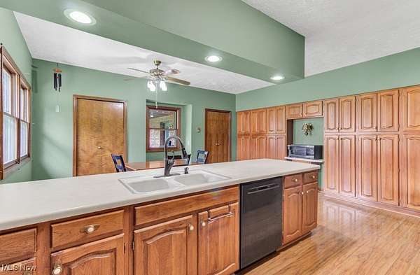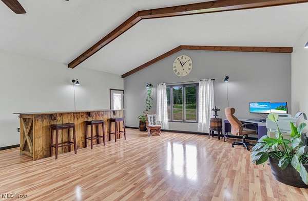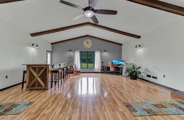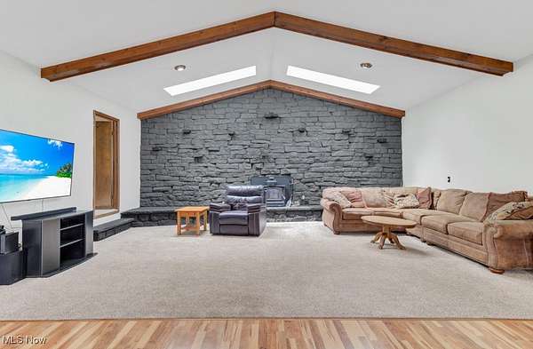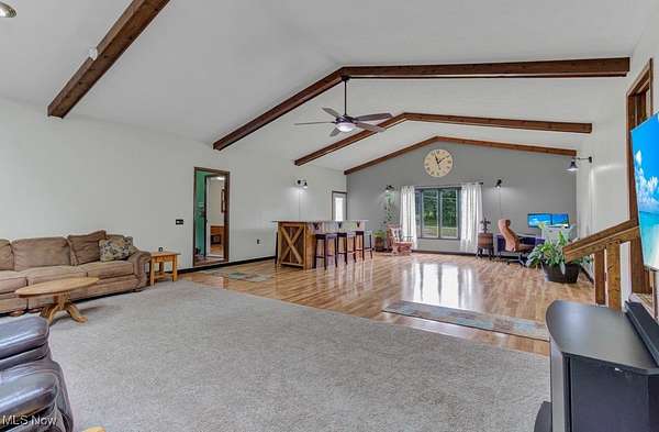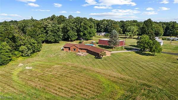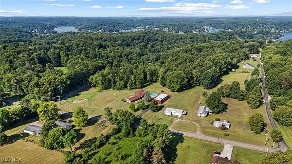 This spacious and updated property is a rare find in Malvern, Ohio! Sitting on 5 acres, this home offers flexibility and smart updates throughout. The main floor includes 3 bedrooms, 1.5 baths, the cathedral beamed ceilings add charm and character to the large living area, and an eat-in kitchen with peninsula. A bonus mudroom/flex room adds potential for office, playroom, or storage. Downstairs, you'll find a large family room, laundry, and an additional full bath-perfect for multi-generational living or entertaining. The garage space is unmatched: an attached 4-5 car garage, heated, finished, and equipped with a floor drain, plus a 40 X 74 detached outbuilding with electric and a concrete floor. Enjoy easy access to the backyard via three different exits, including a stone patio area off the main living area, kitchen walkout, and back door access-ideal for enjoying the above-ground pool and yard. Less than a mile from Lake Mohawk, a gated community with a 500 acre lake and unlimited horse power. Purchase a vacant lot for lake access and enjoy the best of both worlds! Key updates: Roof, Sky Lights, Furnace, and Central Air (2020); Septic (2018) New hot water heater (2025). Also includes woodburner and electric baseboard zone heating. House does have free natural gas, just isn't hooked up to it, but is ran to the house. Don't miss this unique, well-maintained property that offers space, flexibility, and functionality-inside and out!
