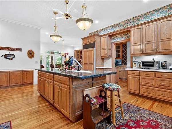 TIMELESS! One owner custom built by Terrell Taylor/ Designer Brent Gibson. Country living & close to town. Brick Entry with double electronic gate. Quality details throughout from top to bottom. All rooms are spacious in size including a fantastic butler Pantry between Formal dining and kitchen with bar, ice maker, sink, wine rack, cabinets with pull out drawers, countertop workspace, built in desk, leaded glass window. Living room with large fireplace/mantle. Dining room with chair railing, nook for sideboard. Dream kitchen with 3 roll out appliance garages. Storage below countertops are roll out. Corian sink/countertops. Double trash bins. Island is 3'8" x 8'11" granite with drawers and pull out storage. Jen Air cooktop sits in arched brick nook. Microwave, sub Zero refrigerator/freezer. Instant hot water. Thermador warming drawer. Under cabinet lighting throughout kitchen. Large walk in pantry. Dinette area with chair rail/built in hutch, double doors/side lights look out onto deck and scenic pond. Extensive family room with fireplace, master bedroom with pan ceiling, built in tv cabinet & storage. Master bath with separate extra large shower, step in tub, double sinks and makeup vanity. Large walk in closet, his/her side with built in center shelving/bench seat. 1 bedroom is a full pullman bath. 2nd bedroom with window seat, walk in closet/shoe rack. 3rd bedroom with walk in closet/shoe rack. WALK IN CEDAR CLOSET. 4th bedroom or study has private bath, walk in closet. Super size utility room with large closet, sink, counter space with cabinets above & below, built in sewing center with work space, ironing board. Plantation shutters. Covered patio. Garage is fully insulated with cedar siding walls and stainless steel sink. 3rd garage/shop with heat/air, lots of built ins & wired for power tools. Security system, sprinkler system. Steel frame 30X40 shop with concrete floor & skylights. WHOLE HOUSE GENERATOR.