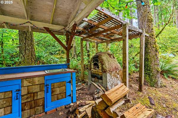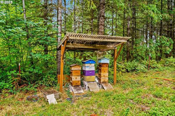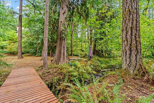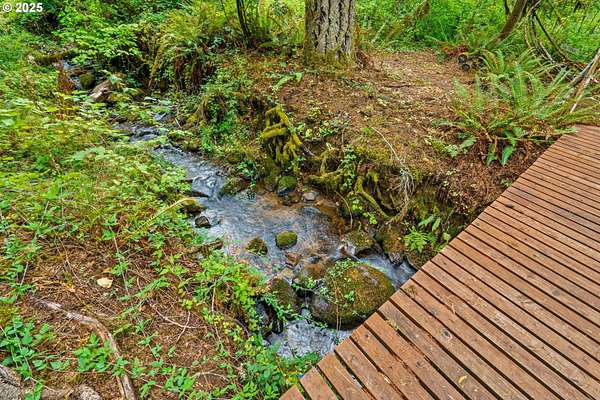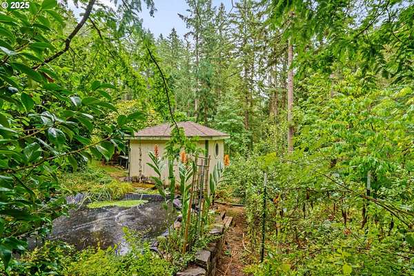 Welcome to this remarkable forest retreat. With proximity to Mckenzie river, this home is perfect for nature lovers who still want to be close to town and its amenities. The current owners have created a sanctuary for animals, plants and people alike. They've planted apple, fig, persimmon, plums, quince, peach, apricot, pear, almond, cherries, elderberry, blueberry, raspberries and many other fruit varieties to create a flourishing food forest. Featuring year round creek with an island and waterfall, acreage to explore, two man-made ponds for koi, terraced gardens, RV parking with full hook-ups, a barn, tons of canning storage, and a bonus 12x14' room/office. Primary bedroom located upstairs with a walk-in closet and oversized tub. There is also a large bedroom downstairs that would make a lovely secondary-primary. Full kitchen remodel two years ago with custom hickory cabinets, granite counters and LVP flooring. Downstairs bathroom was also fully remodeled one year ago. Multiple family weddings have been hosted here, it is an excellent home for entertaining! This home is truly its own private paradise. Don't miss out! *Some photos are virtually staged*