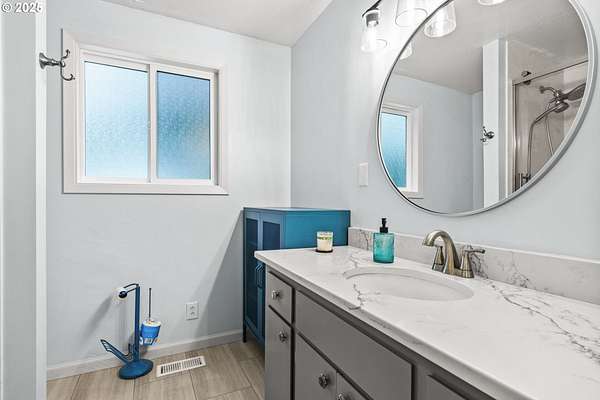 - Bamboo Floor, Laundry, Luxury Vinyl Plank, Skylight, Soaking Tub, Washer Dryer