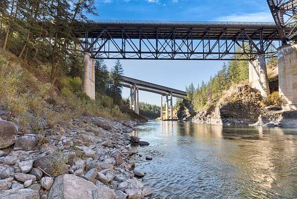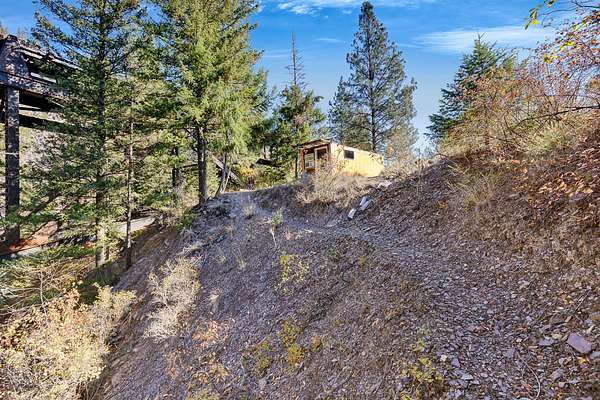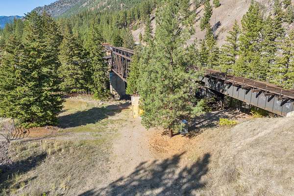5.47 Acres overlooking the Clark Fork River on the Alberton Gorge. Rare riverfront acreage positioned above one of the Clark Fork's most recognizable stretches, the Alberton Gorge. The property is overlooking the Alberton Gorge with views of the purple cliffs and Triple Bridges rapids-Almost 225 feet of river frontage in total. The parcel includes a 24' x 8' insulated container with power. Access is straightforward off Fish Creek and there won't be any issues accessing year-round. A trail runs down the steep bank to the river. Location-wise, you're next to the kayaker put-in with year-round surf waves on the Gorge. Cyr and Tarkio access sites are nearby. The property sits directly above Tarkio East (Sandy Beaches)-a short walk gets you to what's considered the best swimming hole and beach in the area. Surrounded by state land. Currently operating as a primitive campground listed on Hipcamp. This is one of those spots that doesn't come up often on the Gorge.