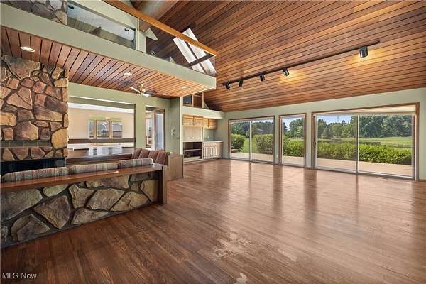 Welcome to this exceptional 4-bedroom, 4.5-bathroom home spanning 4,043 square feet of thoughtfully designed living space. This distinctive property offers an impressive blend of luxury amenities and practical features that cater to both entertaining and everyday comfort. The heart of the home features a stunning great room with soaring two-story ceilings, anchored by a magnificent stone chimney and fireplace. A unique 12x12 sunken conversation area creates an intimate gathering space perfect for quiet evenings or lively discussions. The chef's kitchen stands as a culinary masterpiece, equipped with granite countertops, a commercial-grade six-burner range with griddle, and dual ovens that would make any cooking enthusiast smile with anticipation. The primary suite represents the pinnacle of luxury living, featuring an extraordinary layout with dual en-suite bathrooms, a private balcony, four generous closets, and built-in dressers. One bathroom showcases a shower and bidet with an adjacent private dressing room that could serve as a nursery. The second primary bathroom boasts an oversized jetted tub, personal sauna, additional closets, and a separate shower, creating a spa-like retreat within your own home. Additional living space includes a charming loft overlooking the great room with its own fireplace, plus a partially finished basement with egress window for future possibilities. The property also features a separate in-law suite with a 12x15 living room, 12x8 kitchen, bathroom, and private deck, providing independence while maintaining connection. The outdoor amenities truly set this property apart. A wraparound deck provides multiple entertaining areas, while the swimming pool offers refreshing summer enjoyment. Additional features include a dog run for four-legged family members and a peaceful pond that adds natural beauty to the landscape. Located in Grafton, this home offers convenient access to quality education at nearby Midview High School.
