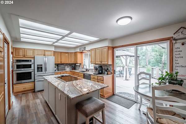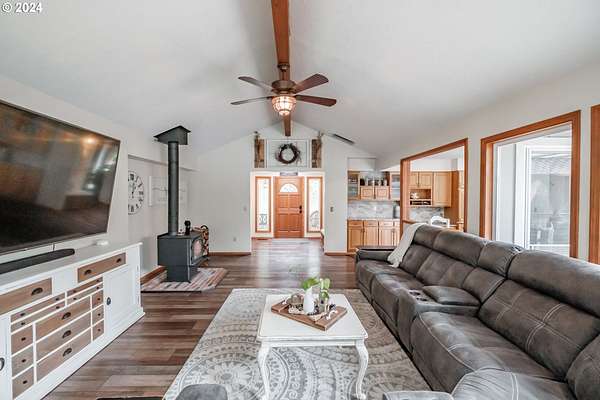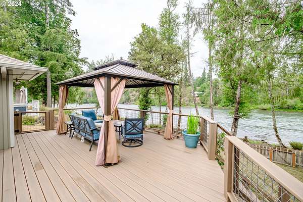 Est $5,359/moNestled on nearly 5 acres of riverfront within a private gated oasis, this property boasts 500+ ft of N Santiam frontage, ideal for fishing and recreation. Relax on the spacious deck or gather around the fire pit just steps from the water. A 30x48 insulated shop with heating/cooling, full bath, and RV hookups inside & out adds versatility. Perfect for family reunions or large events, it also offers fruit trees, vines, fenced garden, dog area, and woodshed. Bonus: no flood insurance required!