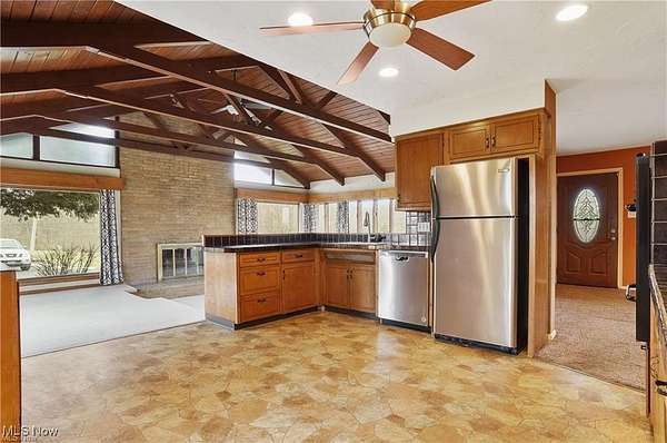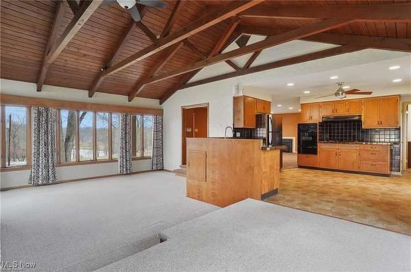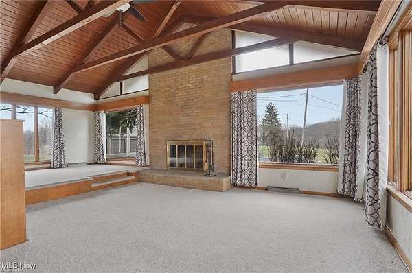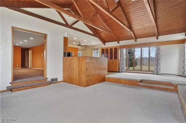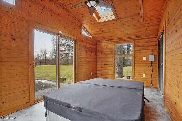 Welcome to this stunning updated ranch! This home situated on 2.21 acres offers an open floor plan with a spacious eat-in kitchen and a huge living room featuring vaulted ceilings and a cozy wood-burning fireplace. Adjacent to the kitchen, the family room provides a peaceful retreat, with views of the pond/lake that make it the perfect place to relax. Boasting 2 generously sized bedrooms and a luxurious full bath with a walk-in shower, this home combines comfort and style. Enjoy a private hot tub room with a wall of windows that overlooks the expansive backyard. The partially finished basement offers additional living space, including a full bath and egress window. The massive 3-car garage is perfect for all your storage needs, and recent upgrades include a new furnace and hot water tank (2023), a new garage roof, door openers, and garage cement (2022), and new windows (2012). Tenant lease is not up until October 2026. tenant pays all utitlies and 2k rent a month!