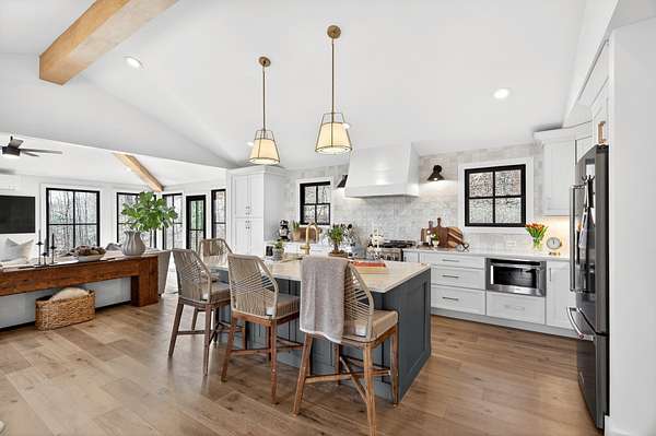 Gutted & reimagined down to the studs in 2022, this retreat is a true reinvention — bright, airy, and styled with the kind of editorial flair that stops scrollers in their tracks. The completely reconfigured open floorplan is anchored by a stunning kitchen featuring custom cabinetry, quartz countertops & a full KitchenAid Professional suite including a 6-burner industrial gas range. A vaulted den with exposed wood beams is surrounded by near floor to ceiling windows, creating an incredible, light-filled space. The primary suite is a true sanctuary with brand-new shower hardware and finishes that are reminiscent of a boutique hotel. Set on 2.4 acres along a quiet dead-end street, the property offers the kind of unhurried privacy that is increasingly rare this close to Nashville. Mature trees frame the lot on all sides, creating a natural buffer that makes the outside world feel genuinely far away — even though Bellevue’s dining and shopping are under 10 minutes down the road and downtown Nashville is under 30 minutes. Sophisticated, move-in ready, and nestled on one of Pegram’s most coveted pockets of land, this is a home where the setting is as rare and curated as the interior.