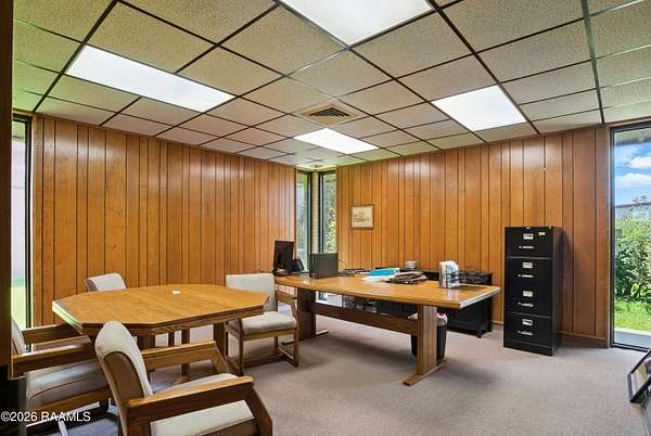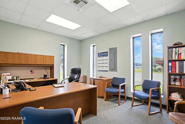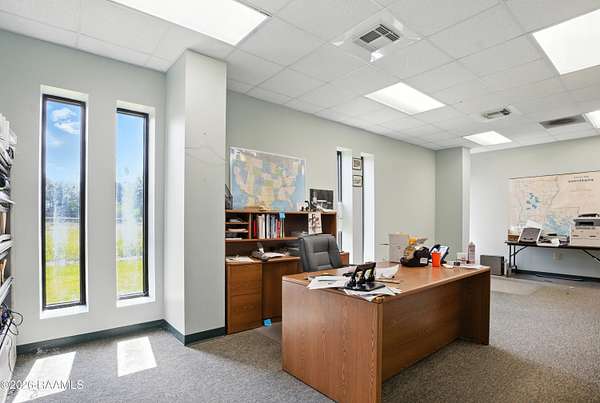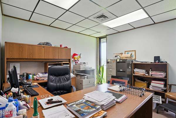 Prime Commercial Opportunity Near Acadiana Regional Airport. Strategically located on a 4.74-acre corner tract at 2nd Street and Hanger Drive, this office/warehouse property sits in one of the fastest-growing commercial corridors near Acadiana Regional Airport. The area is experiencing significant expansion and development, making this a highly desirable investment location. The property offers 16,600+ SF across three buildings, including 6,968 SF of finished office space and 9,640 SF of warehouse space. Main Office (3,608 SF): Reception area, multiple offices, conference areas, 3 baths, Second Office (3,000 SF): Six offices, conference room, 2 baths, Warehouse (9,640 SF): 16' eaves, 20' peak, plus 360 SF office. The site features paved and striped parking along with a limestone yard area, providing flexibility for operations and future expansion. Excellent visibility, strong growth trajectory, and prime positioning make this a standout commercial asset.