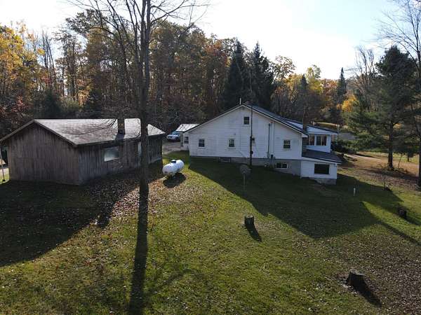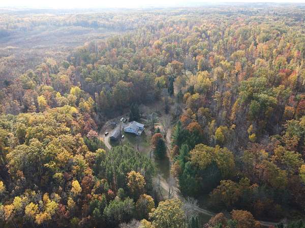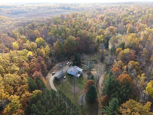 Secluded country home in Clare County set on 79.5 +/- acres! This 2 bedroom 2 1/2 bath home sits nicely back off the road among the rolling fully wooded hills and is located only a few miles from Harrison. Recent updates include flooring, kitchen and knotty pine walls in the kitchen, sunroom and master bedroom & bath. The basement features walk out access with a mudroom, half bath that does have a shower but is not hooked up and side rooms for extra storage or workshop area. An easily accessible attic is currently extra storage but could be converted into a nice bonus room. There is a detached garage for parking along with an older shop and farm barn for toy and equipment storage. The land features rolling hills comprised of mature oak & maple trees along with a smaller pond. There is a trail system that provides good access to most of the property. Whether you are searching for a permanent residence or a hunting camp with family or friends this could be it! For more information dial the Listing Agent directly. **Maps contained on our sites are there to simply depict the over all layout or shape of a given property and show what it looks like from an aerial view. These maps are neither a legally recorded map, or any type of a legal survey and should never be used as such. Also "Acreage" amounts are displayed as according to the information we have obtained through local government and are in no way guaranteed or warranted to be exact*