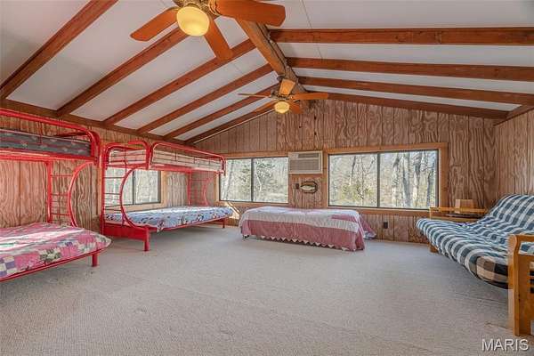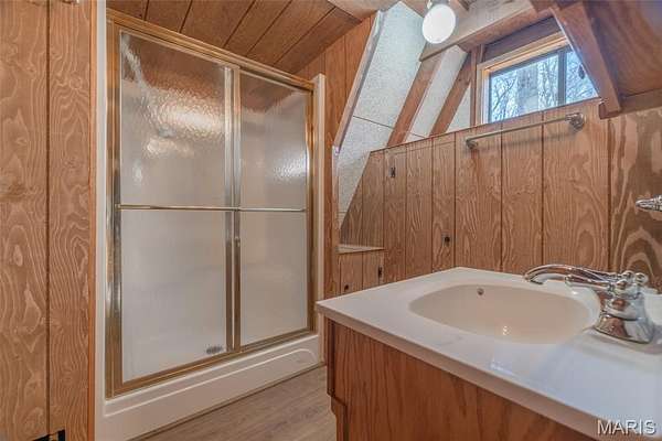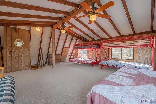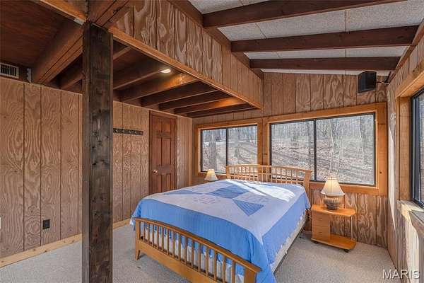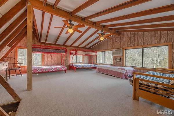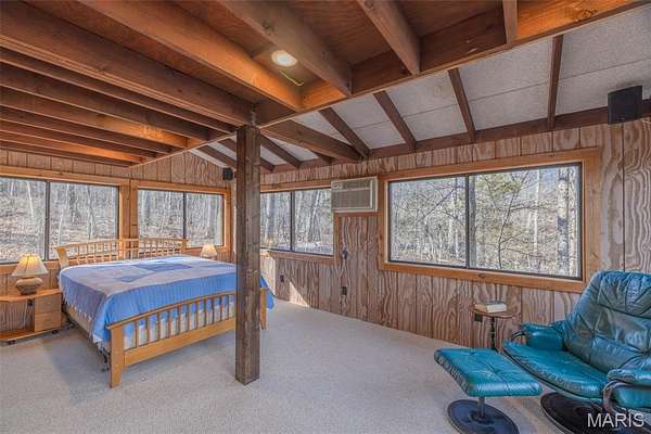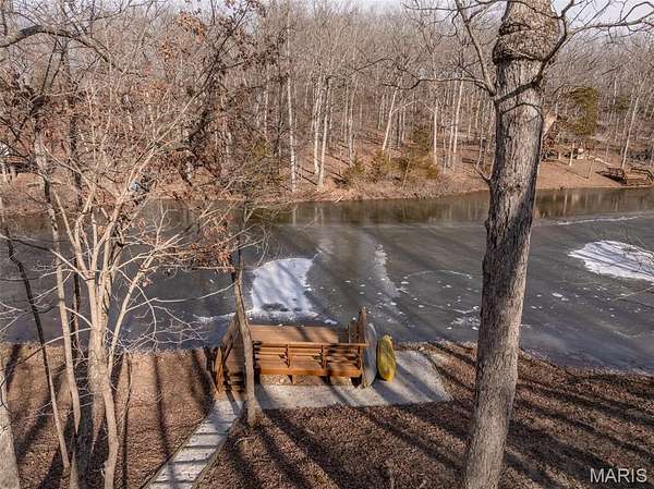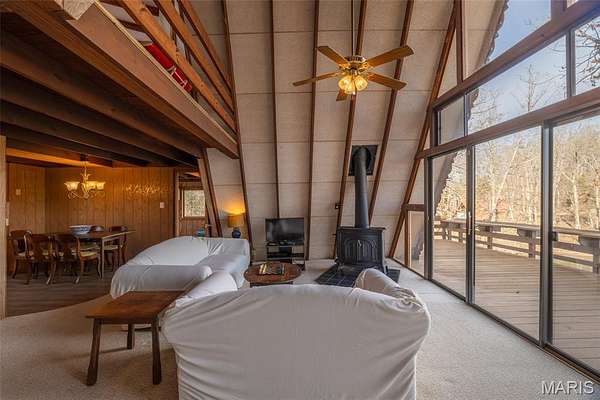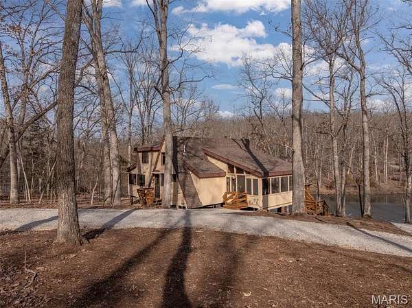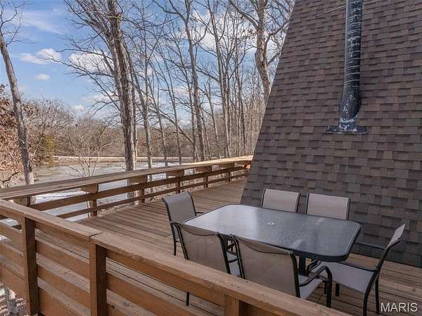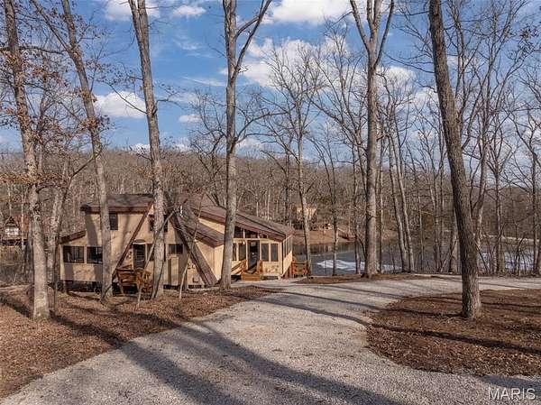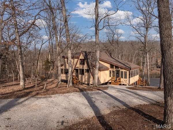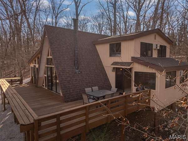 Cute chalet at Innsbrook Resort--just one hour from St. Louis, yet a world away. Picture yourself lakeside, sipping wine while family fishes from your private dock. This charming second home features oversized rooms and abundant natural light, with windows in every room offering serene lake and wildlife views throughout. The kitchen boasts new laminate flooring and a cozy dining area. The iconic A-frame living room impresses with a soaring wall of windows and a wood stove--perfect for winter evenings. An oversized screened porch provides generous space to entertain, dine, or play games. Fun note: the 1,259 sq ft of the chalet doesn't include the large screened porch, which is an additional 212 sq ft. The large primary bedroom includes both sleeping and sitting areas, while the massive upstairs loft offers ample room for guests. Step outside to the freshly stained deck--ideal for grilling, dining, or relaxing among the treetops. An easy walk leads you straight to the lake for fishing, swimming, or paddleboarding. Recent updates include new HVAC, water heater, laminate flooring, septic tank, freshly stained deck and dock, new gravel driveway and walkways, and a roof just three years old. This move-in-ready chalet is perfect for both fun-filled weekends and peaceful retreats. Second-home only and rentals not permitted. Come and enjoy this incredibly peaceful corner of Innsbrook!