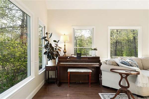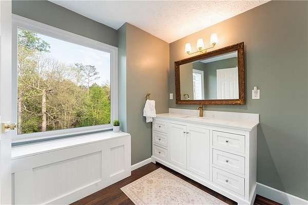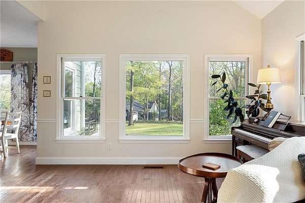 Welcome to 402 Hunters Ct, a beautifully updated home on over 2 private acres in Ball Ground, offering the perfect blend of privacy, modern updates, and outdoor living. If you have been searching for a move-in ready home with land in Ball Ground, this one truly checks every box. Nestled on a gorgeous expansive lot, the property offers endless opportunities for family fun, entertaining, gardening, or even creating your own hobby farm. Step inside and fall in love with the open, inviting floor plan featuring soaring ceilings in the family room and a wall of windows that flood the home with natural light and beautifully bring the outdoors in. The spacious living area flows effortlessly into the updated kitchen, complete with a large island, granite countertops, stainless steel appliances, and an oversized breakfast area surrounded by windows overlooking the breathtaking backyard. The updated owner's suite on the main level is a peaceful retreat with a beautifully renovated spa-like bathroom, perfect for relaxing at the end of the day. Additional bedrooms are generously sized, offering flexibility for family, guests, or work-from-home needs. The basement offers fantastic bonus space ideal for a media room, home office, playroom, or gym, plus a large unfinished walk-out area that could easily be finished for even more living space or used as an excellent workshop, hobby room, or storage area. Outside is where this home truly shines. The 2+ acre lot is a dream setting with plenty of room to play, entertain, or simply enjoy the privacy and peaceful North Georgia surroundings. The charming firepit area creates the perfect backdrop for evenings under the stars, making memories with family and friends. Major improvements including a newer roof, updated windows, renovated bathrooms, and numerous updates throughout offer peace of mind for years to come. Located near top-rated schools, parks, shopping, dining, and easy access to Canton, Ball Ground, and North Metro Atlanta, this home offers the lifestyle today's buyers are searching for. A rare opportunity to own an updated home on acreage in Ball Ground with privacy, modern finishes, and room to grow.