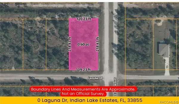 Build your Florida retreat on this 0.60-acre Corner lot located at 402 Laguna Drive, at the intersection of Laguna Dr and Ponce De Leon Ave in the gated community of Indian Lake Estates. This homesite offers a spacious layout with approximately 120 feet of frontage and over 218 feet of depth, providing flexibility to design a custom home with room for outdoor living. Located in Flood Zone X, this property is Not in a designated flood hazard area. Indian Lake Estates is known for its peaceful setting and resort-style amenities centered around Lake Weohyakapka, also known as Lake Walk-in-Water, a more than 7,500-acre lake widely recognized for boating and trophy largemouth bass fishing. Residents enjoy access to a private marina, boat ramp, fishing pier, and lakefront pavilion. Additional community amenities include an 18-hole golf course, clubhouse, fitness center, tennis courts, pickleball courts, basketball court, library, and on-site dining. Wildlife sightings such as deer, sandhill cranes, and bald eagles enhance the natural surroundings. Conveniently located near SR 60, US Highway 27, and within driving distance to I-4, this property offers easy access to Central Florida destinations, including Orlando, LEGOLAND, and the beaches on both coasts. This corner parcel presents an excellent opportunity for a primary residence, seasonal home, or investment in a well-established community known for outdoor recreation and relaxed Florida living. Financing options may be available for qualified buyers, with as little as 20% down payment.