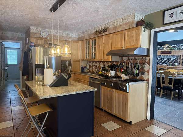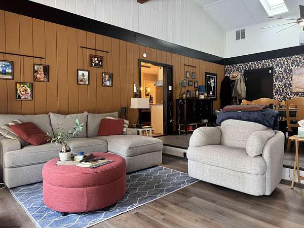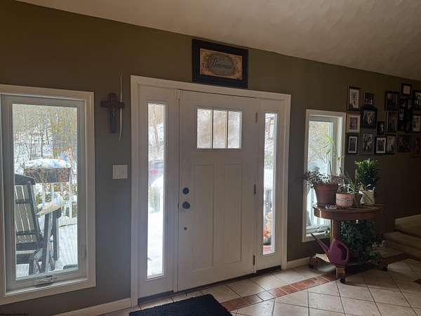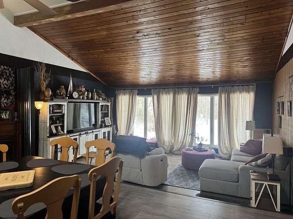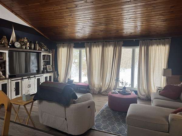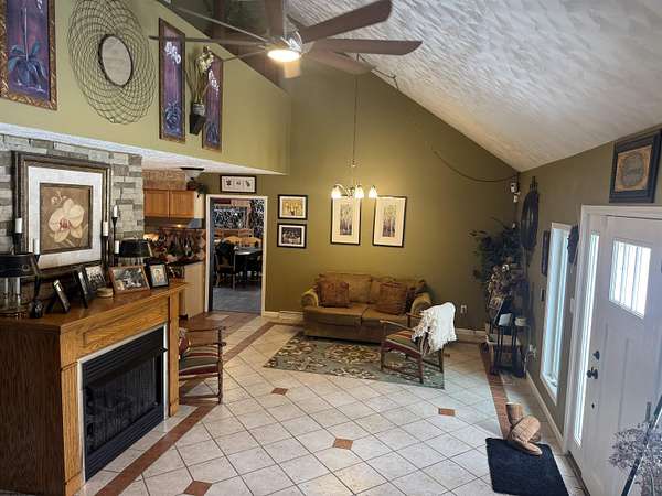 Tucked away on over 5 private acres, this beautiful home offers the perfect blend of peaceful seclusion & everyday convenience, just minutes from all amenities. Designed with comfort & functionality in mind, the home features vaulted ceilings and skylight that flood the space with natural light, creating an open & airy feel. The interior showcases a mix of ceramic tile & luxury plank flooring throughout. The thoughtfully designed layout includes 3 bedrooms & 2.5 baths, with the primary bedroom located on the 1st floor, along with 1st floor laundry making true one-level living possible. The kitchen is equipped with stainless steel appliances & flows into the main areas-perfect for entertaining at home. Additional highlights include a one-car garage, whole-house generator, water softener, and level backyard. Step outside to a large back patio overlooking the serene landscape, where a small stream gently winds through the property, adding to the home's natural charm & privacy. This is a rare opportunity to enjoy spacious acreage, modern comforts and a prime location-all in one exceptional property.