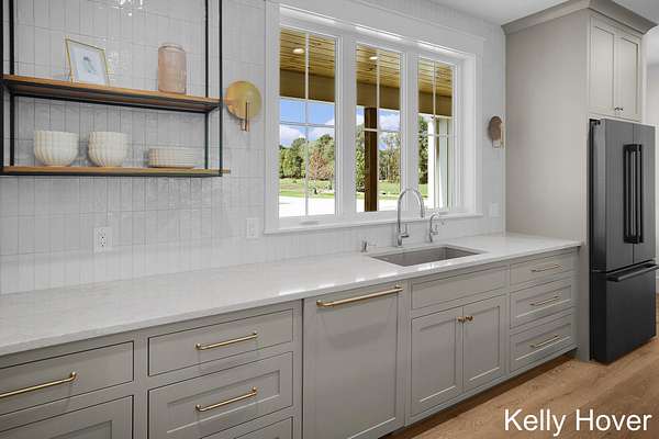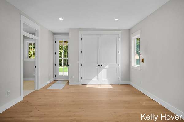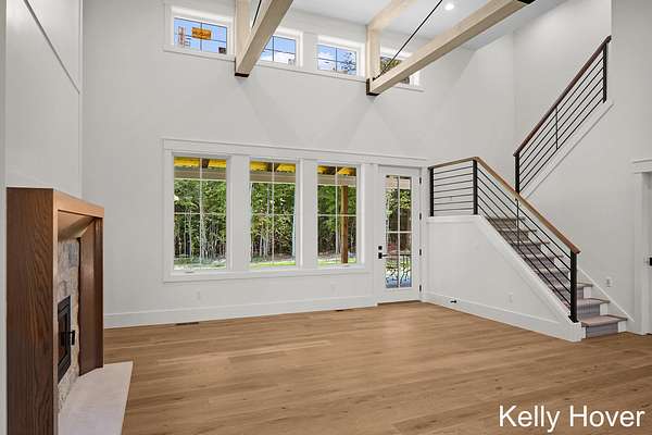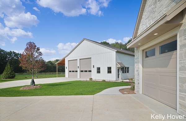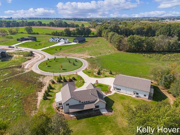 Experience luxury redefined in this exquisite new build, nestled on over 6 wooded acres. This stunning home features 5 bedrooms and 5 baths, with meticulous attention to detail. Discover two main-floor en-suites, dual full kitchens with Bosch appliances, a butler pantry and luxury finishes throughout. Enjoy upgraded features including all custom cabinets and trim, engineered hardwood flooring, LP siding, all casement windows, tankless water heater and generator hookup. Cozy up by one of two fireplaces or relax on the covered patio, complete with stamped concrete and a wood-beamed ceiling. Designed for comfort and accessibility, this zero-entry, fully ADA-compliant home is truly unique. A remarkable 48' x 70' barn offers a kitchenette, another full bath, and office/flex space, while the extra-deep 4-stall garage(s) ensures ample storage. With unmatched privacy, exceptional craftsmanship, and a floor plan designed for elegance and functionality, this property is truly one of a kind.