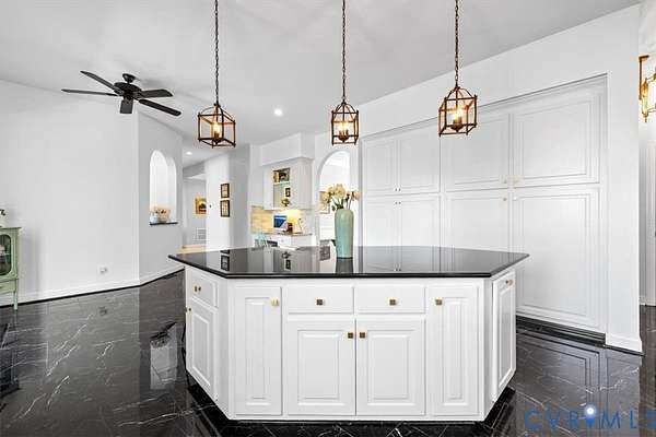 - Bath In Primary Bedroom, Bay Window, Bedroom On Main Level, Bookcases, Built In Features, Cable TV, Ceiling Fans, Central Vacuum, Dining Area, Eat In Kitchen, Fireplace, Granite Counters, High Ceilings, Kitchen Island, Recessed Lighting, Separate Formal Dining Room, Skylights, Walk In Closets, Wet Bar