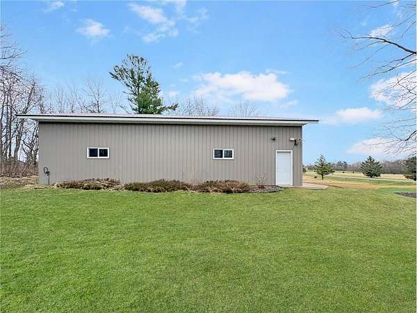 Outside, the setup is hard to beat. A heated 4-stall garage (44x26), a 50x40 heated workshop with permanent air compressor system, a storage shed, and a private pond round out this property's impressive list of amenities. Beautifully landscaped on partially wooded acreage with a private, country feel.