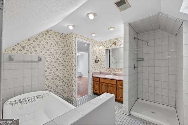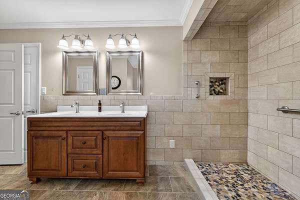- Double Vanity, High Ceilings, Master On Main Level, Separate Shower, Soaking Tub, Tile Bath, Tray Ceiling(s)
